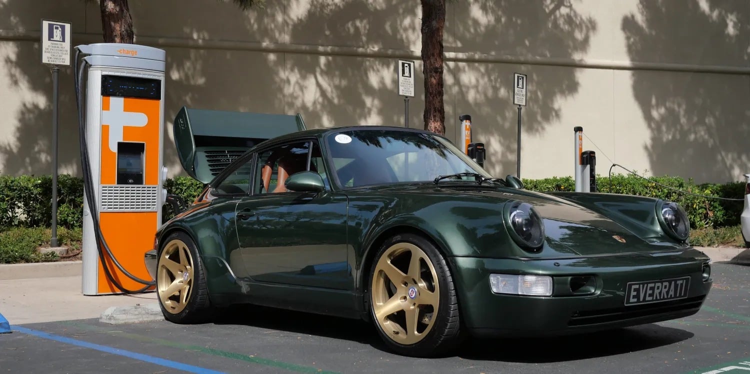 Η Everrati, με έδρα το Ηνωμένο Βασίλειο, εξειδικεύεται σε restomods, μετατρέποντας εμβληματικά μοντέλα όπως η 911, η Pagoda, το Land Rover Series IIA και το Ford GT40, σε ηλεκτρικά. Η συγκεκριμένη 911 που οδηγήθηκε στην Καλιφόρνια, ήταν προσαρμοσμένη κατά παραγγελία, ενώ ακόμα και η θέση της θύρας φόρτισης επιλέχθηκε από τον πελάτη.