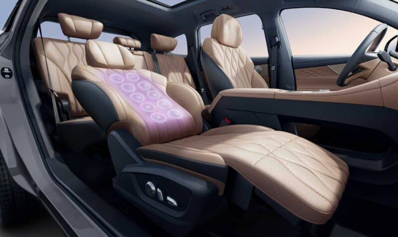 Τα καθίσματα είναι εξαιρετικά πολυτελή: τα μπροστινά καθίσματα έχουν θέρμανση και αερισμό, ενώ το κάθισμα του συνοδηγού προσφέρει μασάζ 10 σημείων και ηλεκτρικό ποδοστάτη.