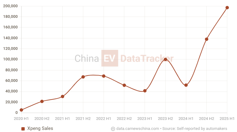 Η Xpeng σημείωσε εντυπωσιακές επιδόσεις, παραδίδοντας 34.611 οχήματα τον Ιούνιο (+224% σε ετήσια βάση), ενώ στο πρώτο εξάμηνο του 2025 έχει ήδη παραδώσει 197.189 οχήματα παγκοσμίως, δηλαδή 279% περισσότερα από την αντίστοιχη περίοδο πέρυσι. Αυτό αντιπροσωπεύει πάνω από το 50% του ετήσιου στόχου της.