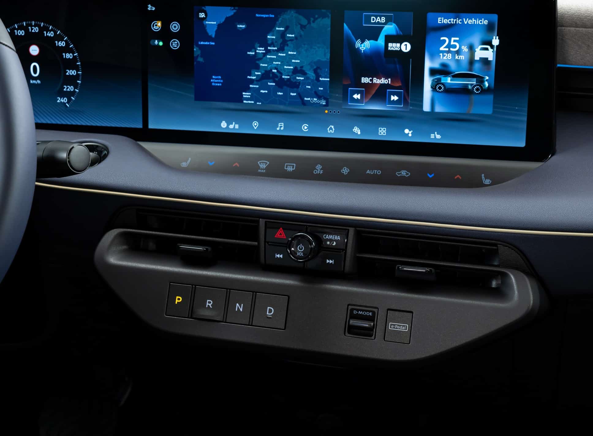 Το αυτοκίνητο έχει σχεδιαστεί για να υποστηρίζει τον οδηγό με μια σειρά από διαισθητικά χαρακτηριστικά: • Το ProPILOT Assist με Navi-link προσαρμόζεται στις καμπές και τα μεταβαλλόμενα όρια ταχύτητας για αβίαστη οδήγηση στον αυτοκινητόδρομο• Το e-Pedal Step και το ρυθμιζόμενο αναγεννητικό φρενάρισμα προσφέρουν ομαλή οδήγηση με ένα πεντάλ σε αστικές περιοχές. Τα επίπεδα αναγέννησης ρυθμίζονται πλέον μέσω των χειριστηρίων αλλαγής ταχυτήτων ή αυτόματα μέσω του Intelligent Distance Control, το οποίο προσαρμόζει την αναγέννηση με βάση τις συνθήκες κυκλοφορίας.