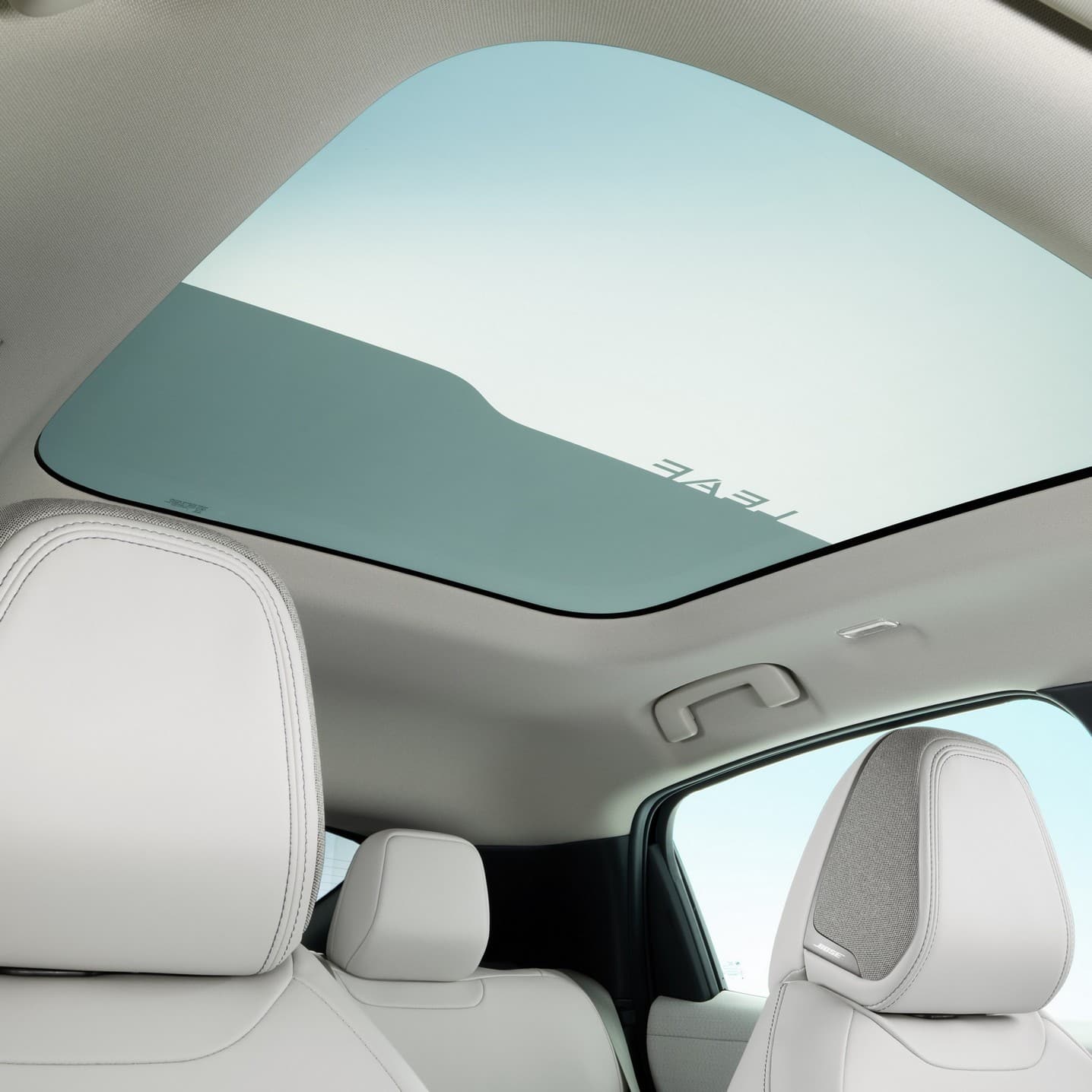 Από την πανοραμική γυάλινη οροφή με σκίαση, μέχρι τα εντυπωσιακά τρισδιάστατα πίσω φώτα και τα φινιρίσματα υλικών υψηλής ποιότητας, κάθε λεπτομέρεια του ολοκαίνουργιου LEAF είναι κατασκευασμένη με προσοχή. Οι οδηγοί θα βρουν ένα ευρύχωρο, εργονομικό εσωτερικό με καθαρές γραμμές, βελτιωμένη ορατότητα και ατμοσφαιρικό φωτισμό που αναβαθμίζει την εμπειρία στην καμπίνα. Το ολοκαίνουργιο LEAF προσφέρεται σε επτά επιλογές εξωτερικών χρωμάτων, συμπεριλαμβανομένου του μοναδικού τιρκουάζ του LEAF – Luminous Teal, ενώ οι εσωτερικές επενδύσεις διατίθενται σε μαύρο ή λευκό με μωβ λεπτομέρειες.