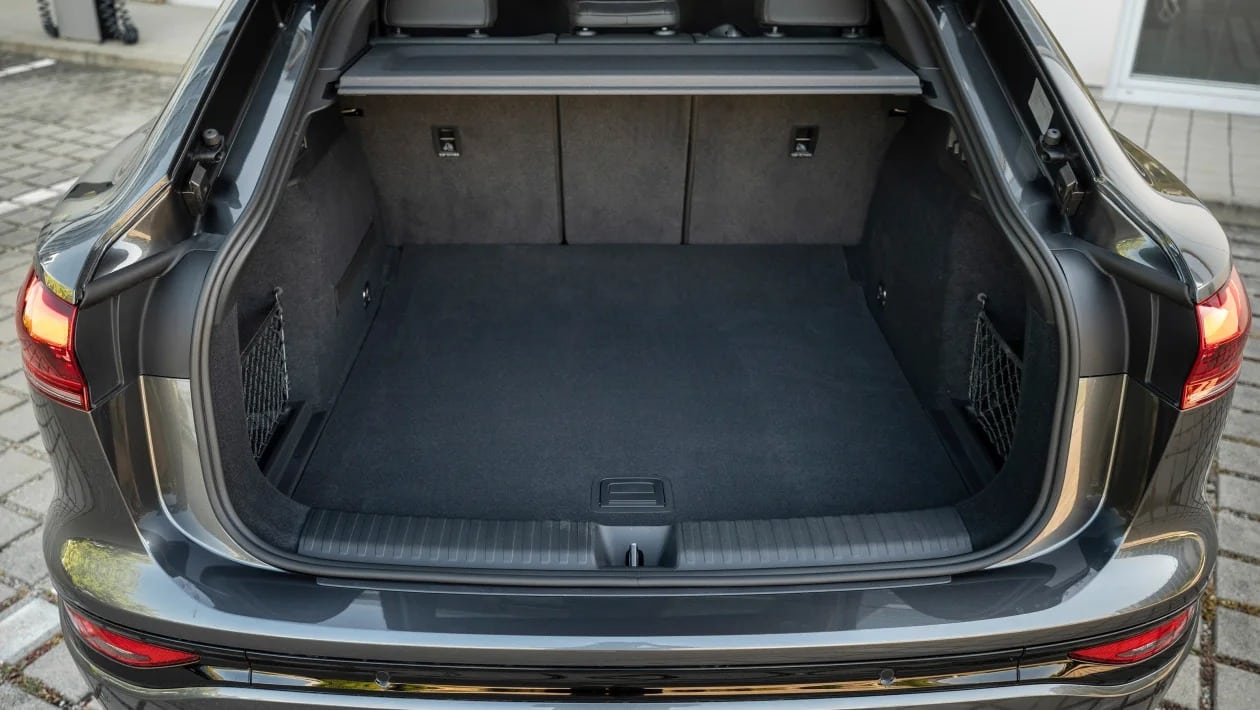 Το Q6 Sportback δεν είναι κορυφαίο σε ευρυχωρία σε σχέση με το μικρότερο Q4, αλλά προσφέρει άνεση για δύο ενήλικες στο πίσω κάθισμα και επαρκή χώρο για τα γόνατα. Ωστόσο, οι πιο ψηλοί επιβάτες, ενδέχεται να αγγίξουν την οροφή. Το πορτμπαγκάζ χωράει 511 λίτρα και φτάνει έως τα 1.373 λίτρα με τα καθίσματα διπλωμένα. Ένας πρόσθετος αποθηκευτικός χώρος 64 λίτρων κάτω από το εμπρός καπό προσφέρει επιπλέον πρακτικότητα.