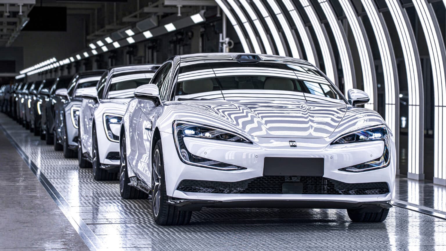 Οι πρώτες εικόνες από τη γραμμή παραγωγής, δείχνουν ένα sedan με λευκό αμάξωμα, ζάντες 21 ιντσών, αισθητήρα LiDAR στην οροφή και λευκό εσωτερικό, δηλώνοντας ξεκάθαρα τις premium προθέσεις του.