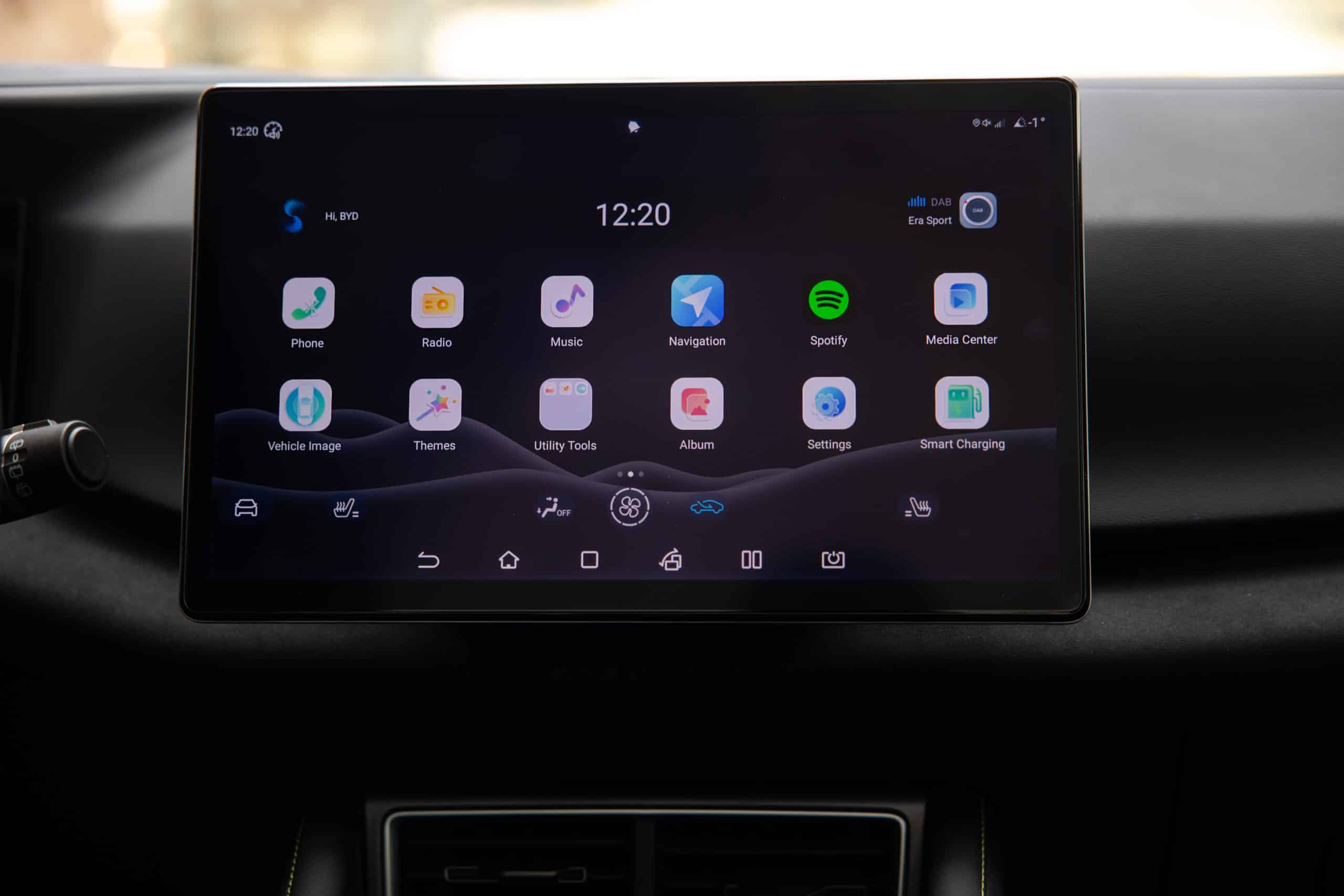 Η είσοδος στην καμπίνα αποκαλύπτει έναν χώρο όπου η τεχνολογία και η ποιότητα συνυπάρχουν αρμονικά. Το βλέμμα κλέβει η κεντρική οθόνη αφής 12,8 ιντσών, η οποία μπορεί να περιστρέφεται, επιτρέποντας στον οδηγό να επιλέξει μεταξύ οριζόντιας και κάθετης διάταξης. Το σύστημα infotainment υποστηρίζει Android Auto και Apple CarPlay, ενώ η συνδεσιμότητα 5G διασφαλίζει κορυφαίες ταχύτητες.