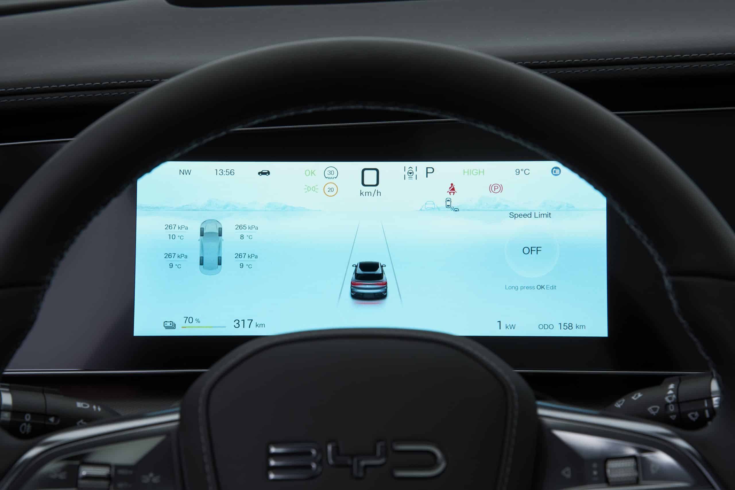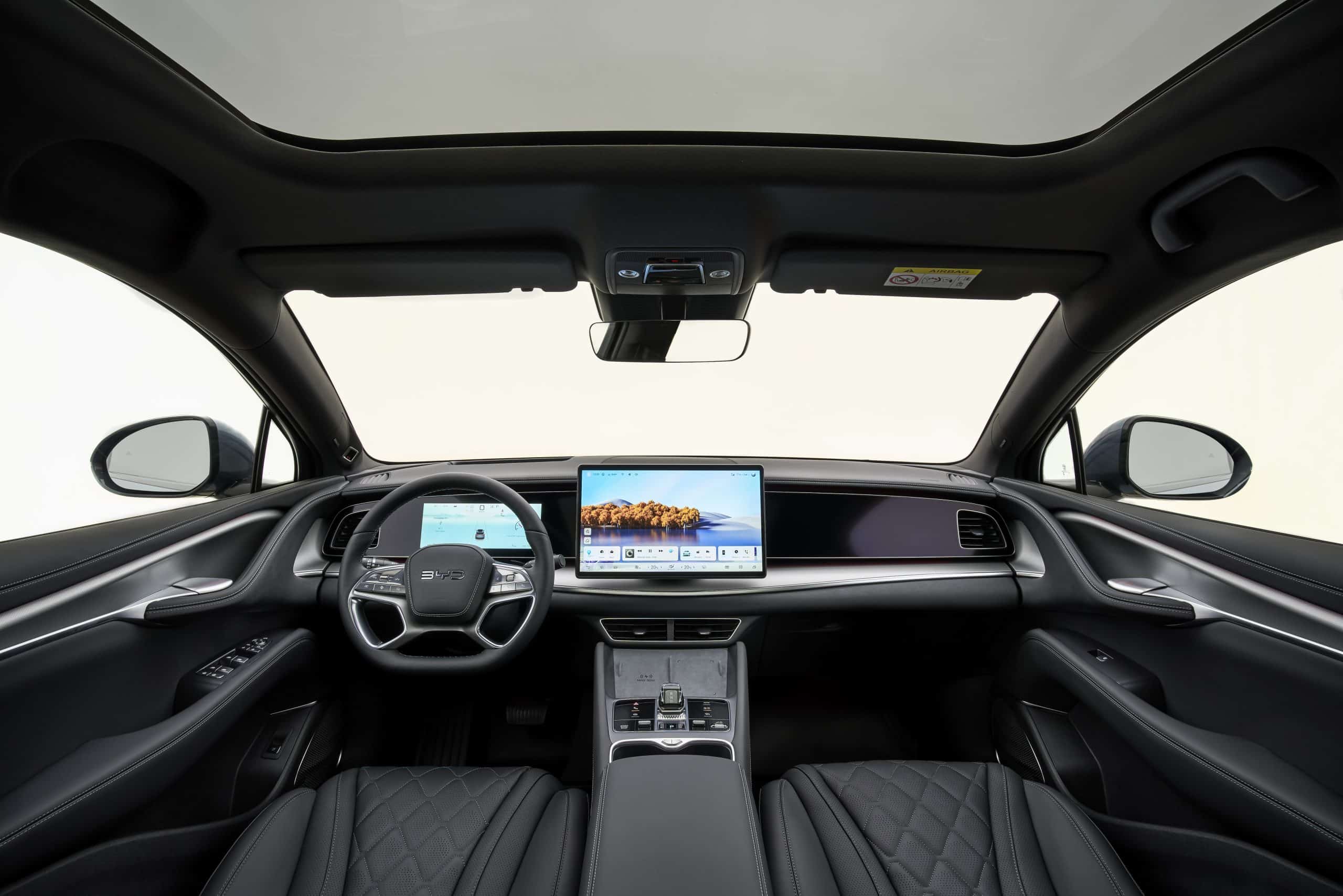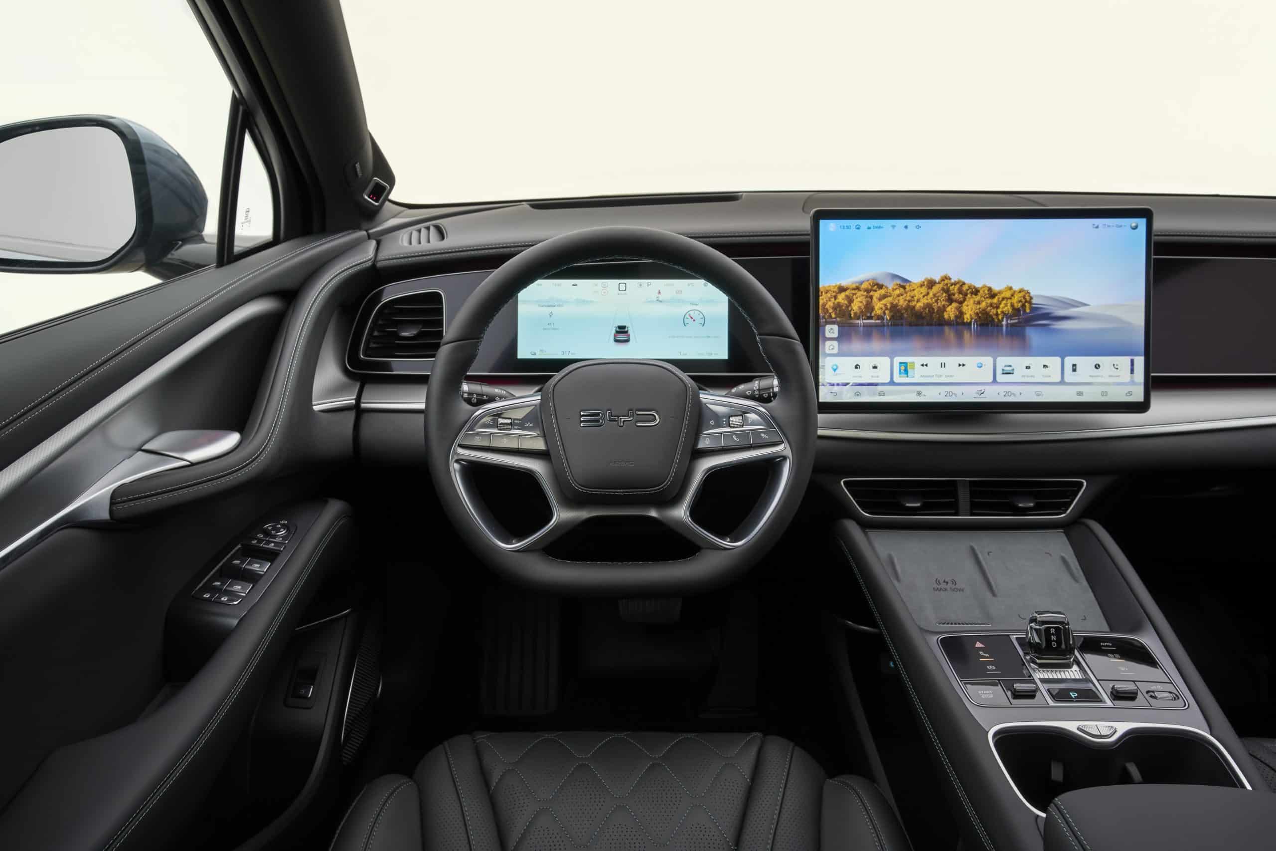 Το SEALION 7 διαθέτει στο κέντρο του ταμπλό οθόνη 15,6”, η οποία περιστρέφεται κατακόρυφα ή οριζόντια, αξιοποιώντας το πιο πρόσφατο λογισμικό της BYD με βελτιωμένη, φιλική διεπαφή. Παράλληλα, ο ψηφιακός πίνακας οργάνων 10,25” και το Head-Up Display (HUD) της έκδοσης Excellence AWD προβάλλουν πλοήγηση, μουσικές πληροφορίες, ταχύτητα, όρια ταχύτητας και δεδομένα συστημάτων υποβοήθησης του οδηγού.