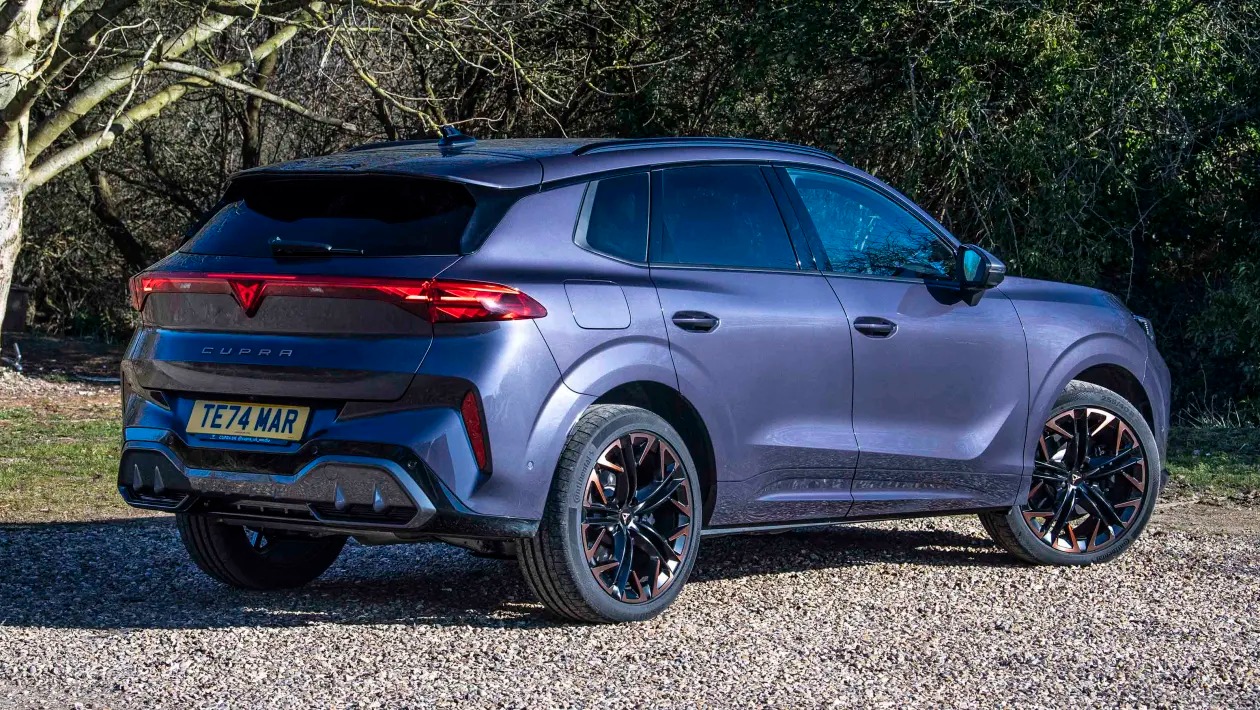 Η σχεδίαση του Terramar αντικατοπτρίζει τη φιλοσοφία της Cupra, με επιθετικές γραμμές, μυώδες καπό και χαρακτηριστικά φώτα LED που δημιουργούν μια μοναδική ταυτότητα. Το μπροστινό μέρος του είναι περίπλοκο, με αεραγωγούς που συνδυάζουν λειτουργικά και διακοσμητικά στοιχεία, ενώ οι χάλκινες λεπτομέρειες, προσδίδουν μια premium και σπορτίφ νότα. Η επιλογή χρωμάτων είναι περιορισμένη αλλά κομψή, με την απόχρωση “Dark Void” – ένα ιδιαίτερο μείγμα γκρι και μωβ – να ξεχωρίζει στο φως του ήλιου.