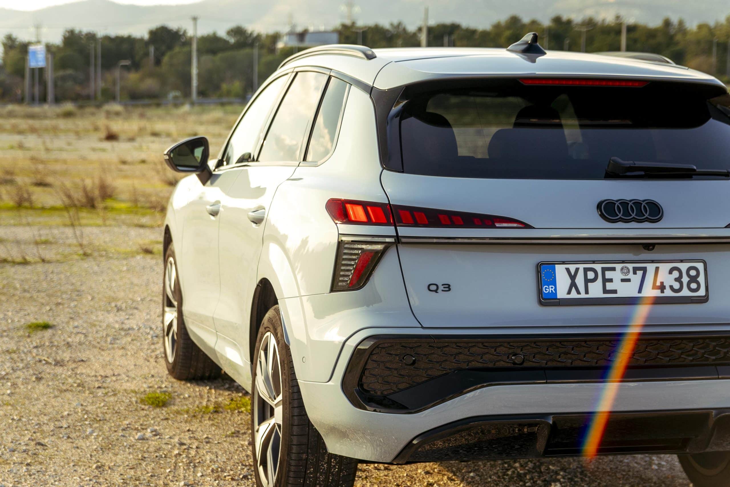 Η συνολική εικόνα αποπνέει ωριμότητα και δυναμισμό. Το Q3 δείχνει στιβαρό και κομψό χωρίς να επηρεάζεται από τον όγκο του. Είναι ένα αυτοκίνητο που στέκεται με αυτοπεποίθηση σε κάθε περιβάλλον, από τα στενά της πόλης μέχρι τον αυτοκινητόδρομο και τις εξορμήσεις στην εξοχή.