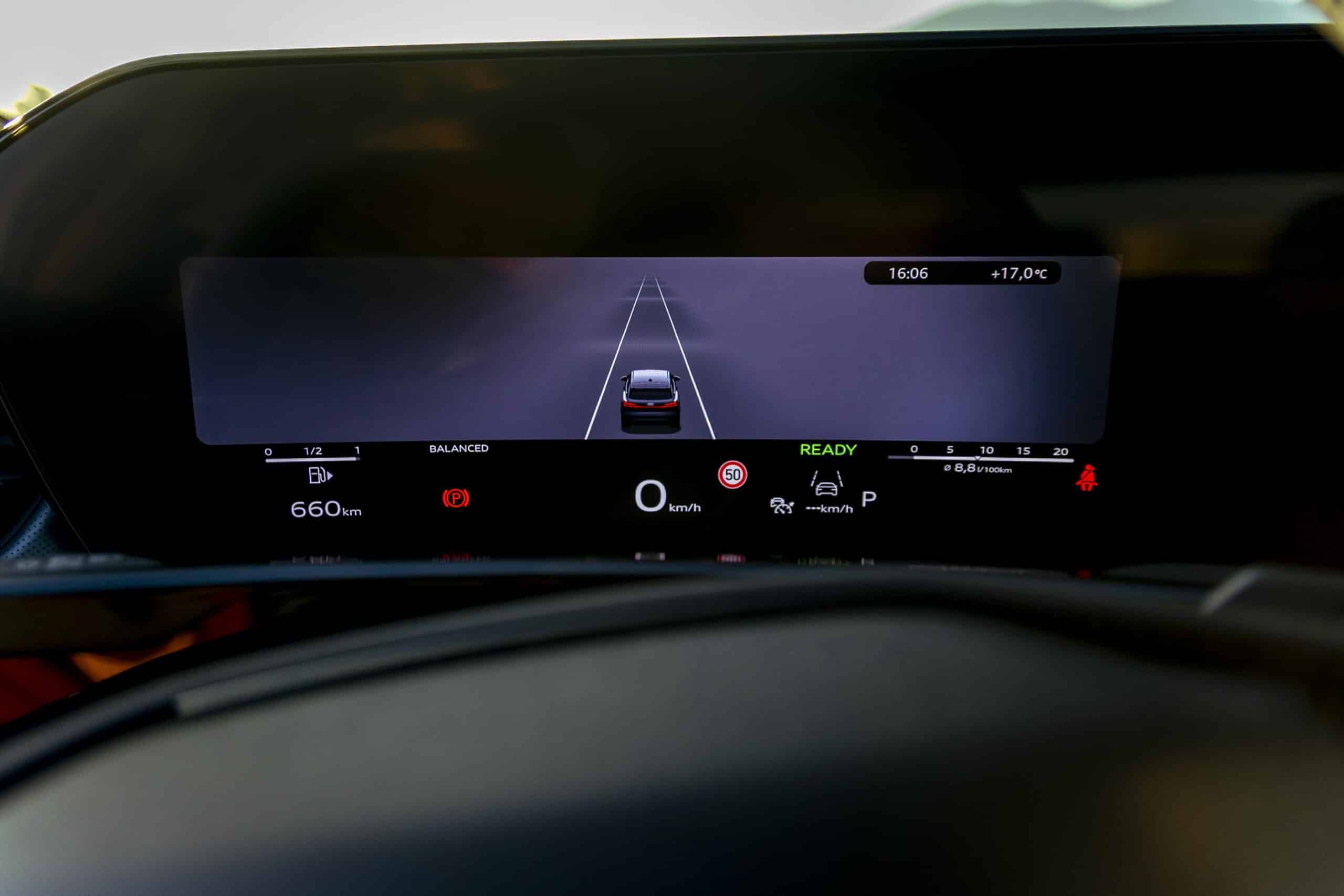 Η μεγάλη κεντρική οθόνη των 12,8 ιντσών δεσπόζει στο κέντρο και αποτελεί το βασικό σημείο ελέγχου για τις περισσότερες λειτουργίες του Q3. Η απόκριση είναι άμεση, τα γραφικά καθαρά και η λογική των μενού διευκολύνει την καθημερινή χρήση. Ο ψηφιακός πίνακας οργάνων συμπληρώνει την εικόνα, προσφέροντας ευκρινή προσαρμοζόμενη πληροφόρηση.