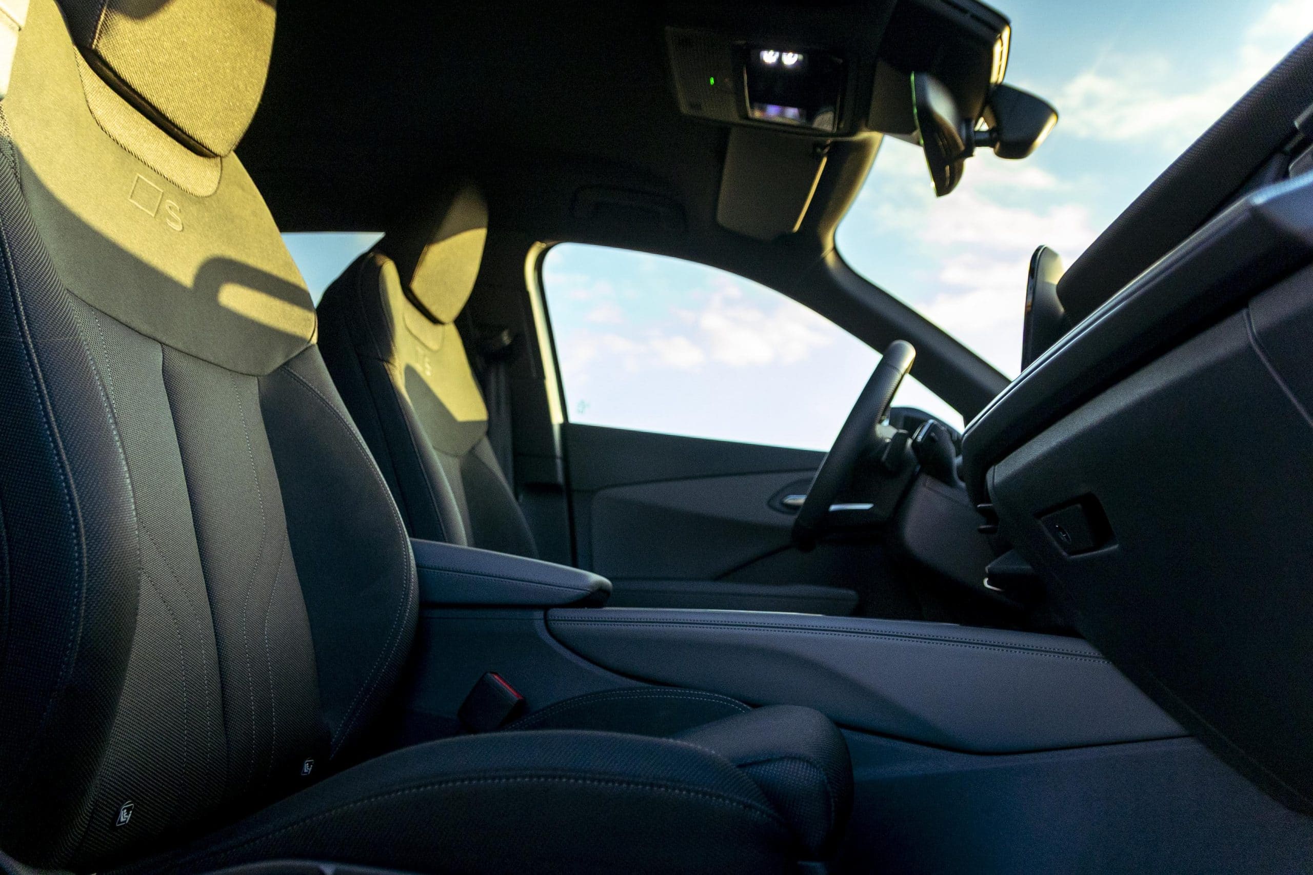 Έτσι αυτό το σημείο έχει πλέον δύο ποτηροθήκες, το ηλεκτρονικό χειρόφρενο, την ροδέλα έντασης του ήχου και μια κλειστή θήκη με ασύρματη επιφάνεια φόρτισης κινητού, δύο θύρες Type C και μια 12βολτη. Φυσικά μεταξύ των καθισμάτων υπάρχει και ο συνήθης αποθηκευτικός χώρος κάτω από το υποβραχυόνιο. Η θέση οδήγησης ρυθμίζεται εύκολα και προσφέρει άριστη ορατότητα, ενώ τα καθίσματα είναι πολύ άνετα και έχουν το χαρακτηριστικό”S” κάτω από το προσκέφαλο.