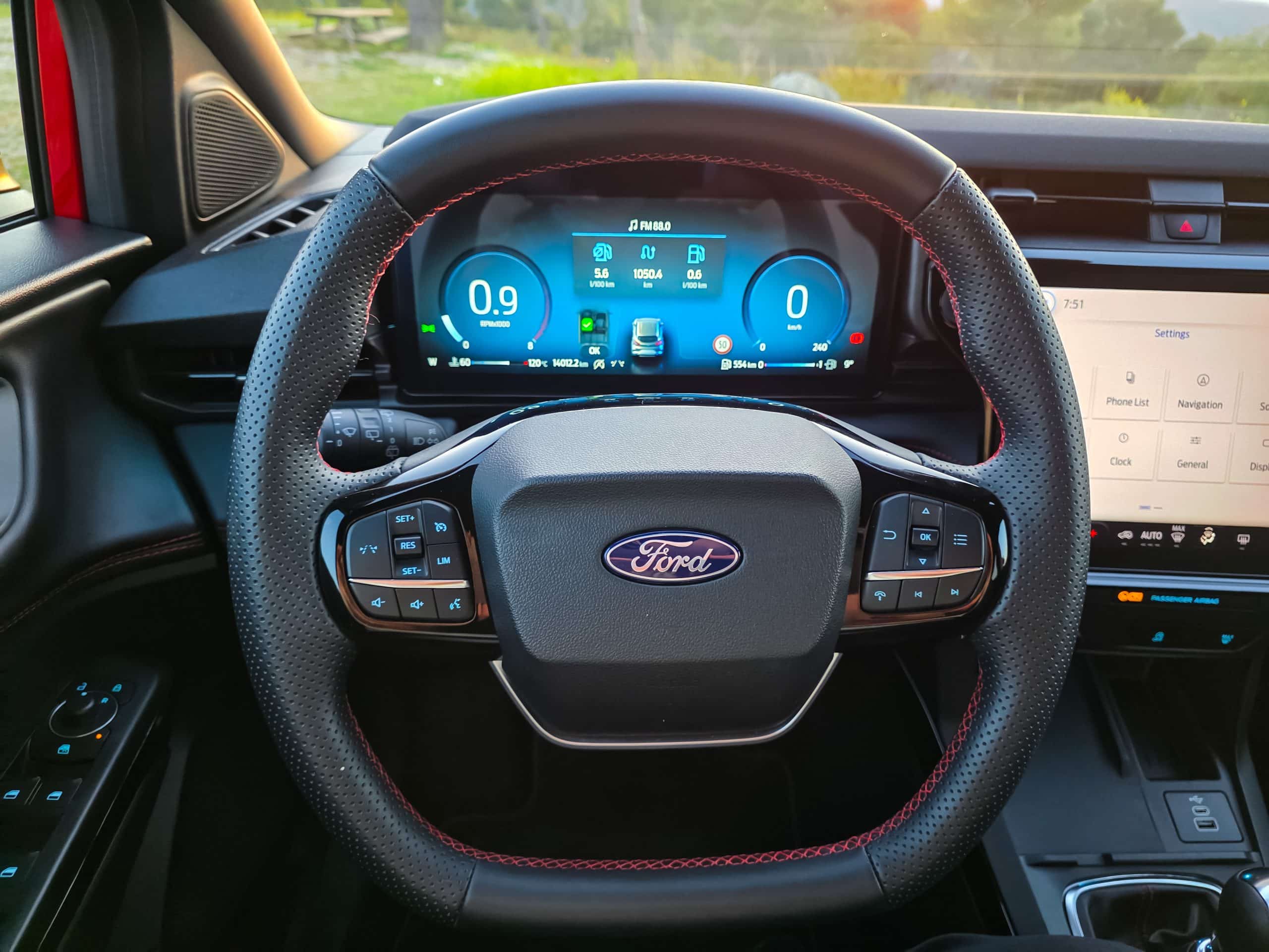 Κάτω από το καπό, το 1.000άρι EcoBoost μοτέρ, υποστηριζόμενο από ήπια υβριδική τεχνολογία 48V, αποδεικνύεται στα χαρτιά αλλά υπέρ αρκετό στην πράξη. Οι 125 ίπποι ξεδιπλώνονται με έναν τρόπο που συνδυάζει ζωντάνια και ραφιναρισμένη απόδοση, ενώ η συνεισφορά του ηλεκτρικού υποσυστήματος προσφέρει ένα «μαξιλάρι» ροπής που κάνει την καθημερινή κίνηση πιο άμεση και ομαλή.