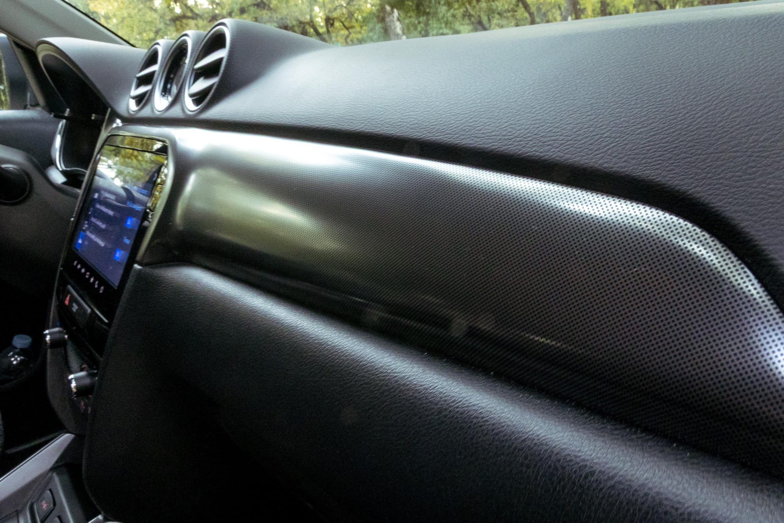 Στο εσωτερικό του Vitara η φιλοσοφία παραμένει «γήινη» και ξεκάθαρα προσανατολισμένη στην εργονομία και στην πρακτικότητα, αποφεύγοντας τις υπερβολές που συναντάμε συχνά τον τελευταίο καιρό. Η διάταξη του ταμπλό είναι απλή και εύχρηστη ώστε ο οδηγός να εντοπίζει αμέσως ό,τι χρειάζεται.