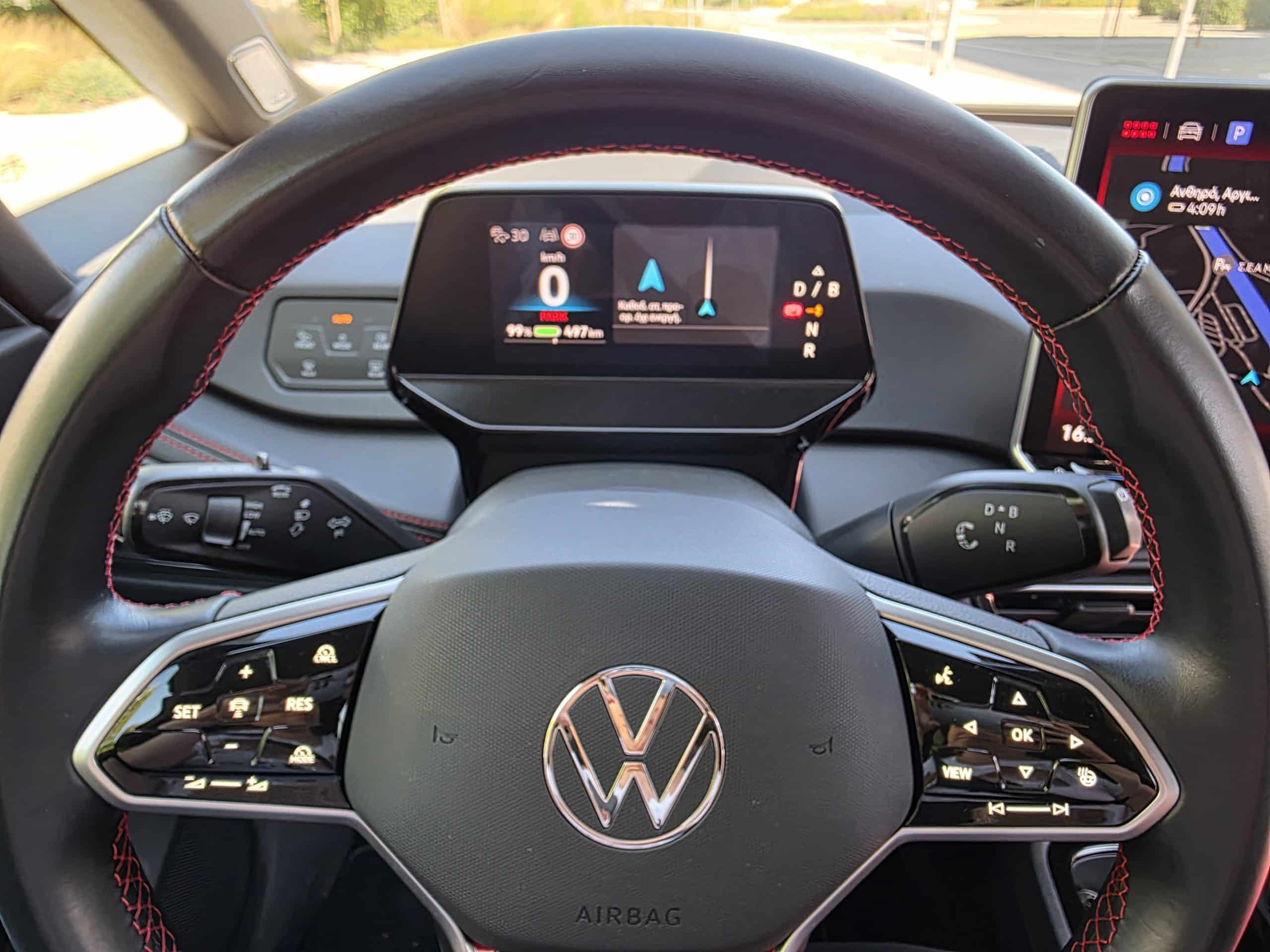 Στο δρόμο, το ID.3 GTX ξεκινά με το τιμόνι «ελαφρύ» και άμεσο αλλά σταδιακά «ζωντανεύει» όσο ανεβαίνει ο ρυθμός.