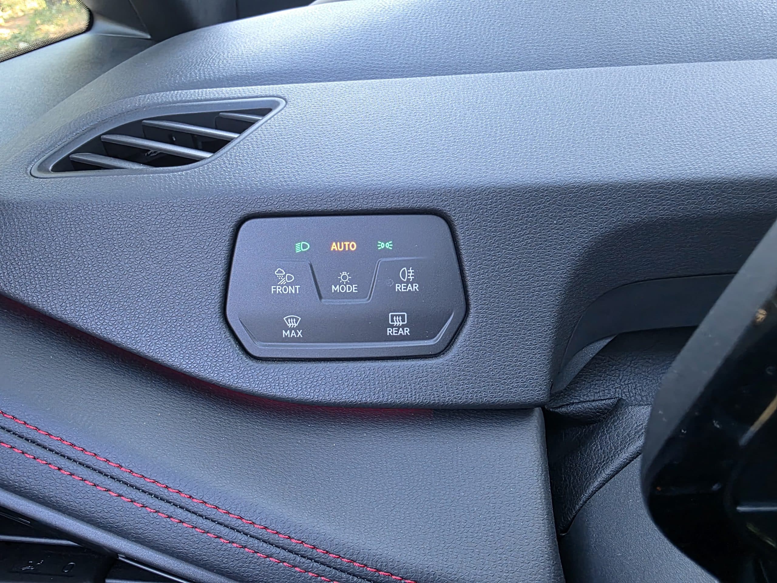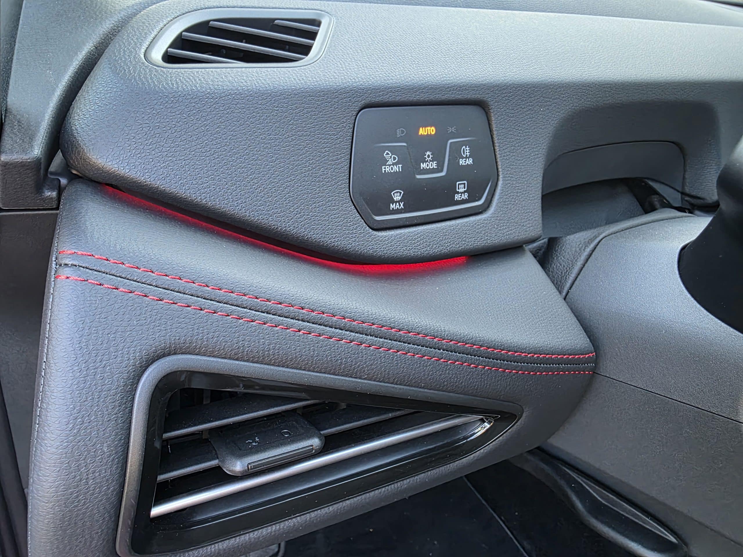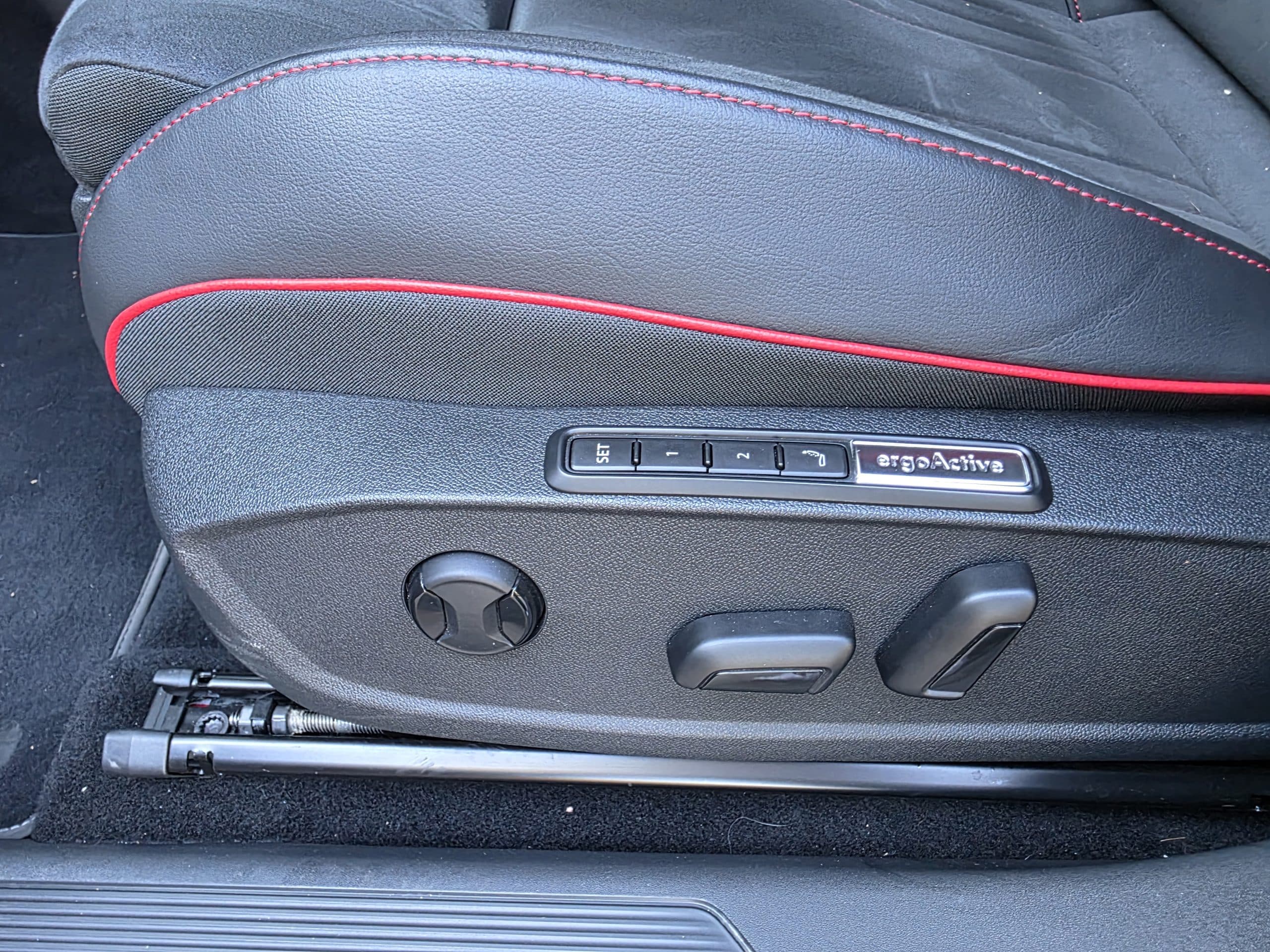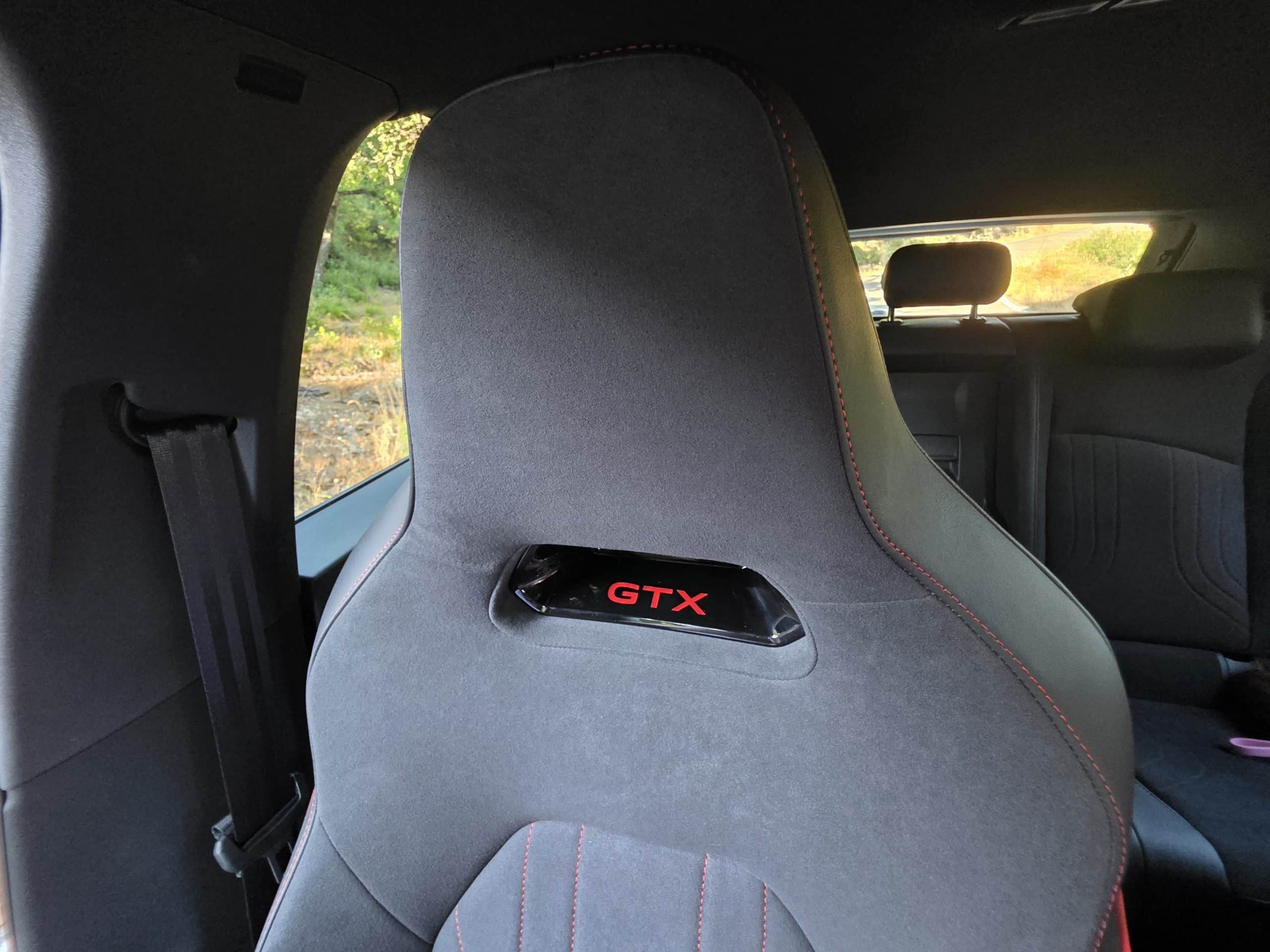 Ο λογότυπος GTX υπάρχει πάνω στο ενιαίο προσκέφαλο και συνολικά παρέχουν πολύ καλή πλευρική στήριξη ενώ και η θέση οδήγησης είναι εξαιρετική. Κόκκινες ραφές διανθίζουν την εικόνα σε μια καμπίνα που τα υλικά και η συναρμογή βρίσκονται ψηλά σε ποιότητα.