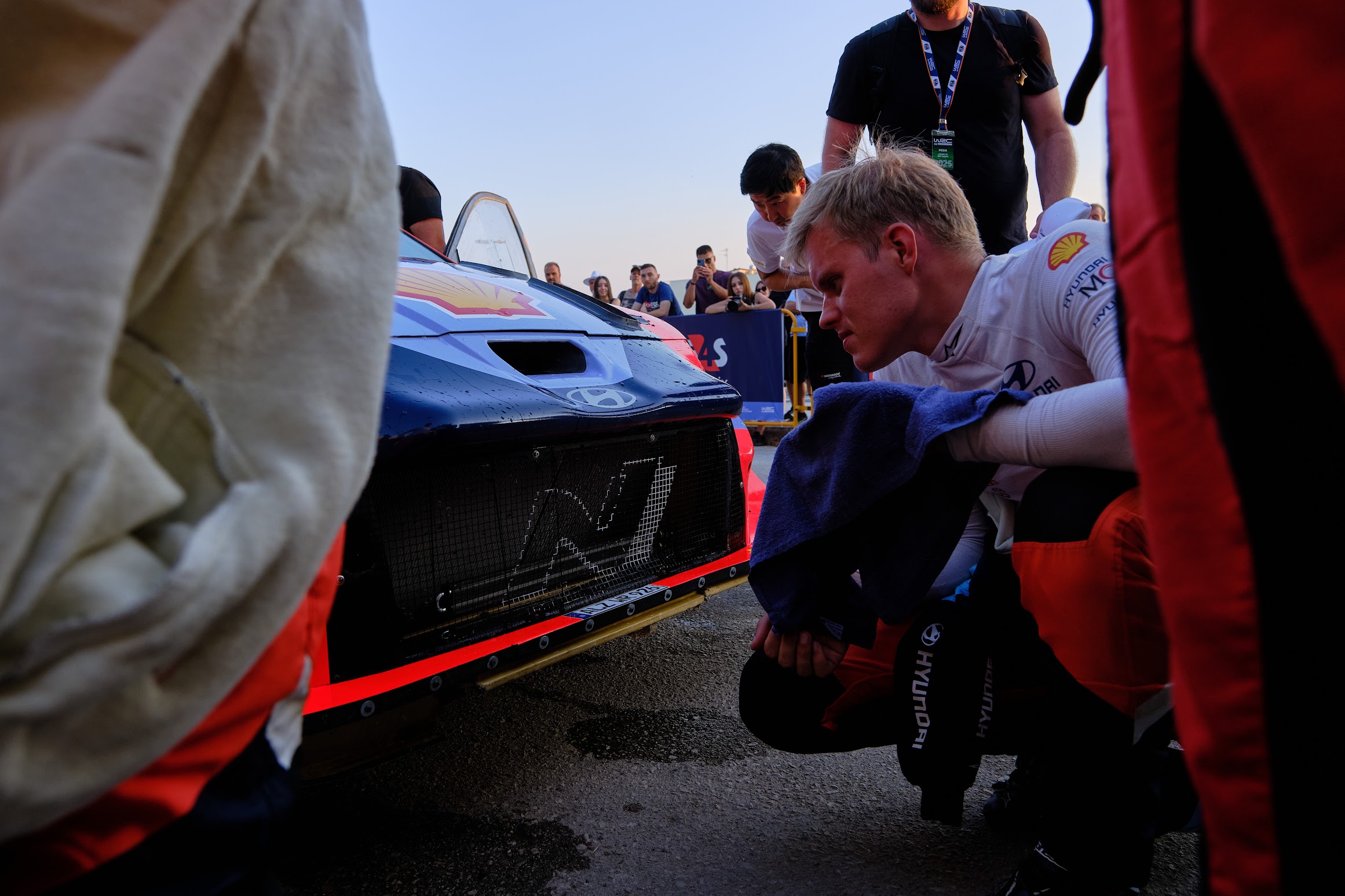 Αλώβητοι από τις έξι εξαιρετικά απαιτητικές ειδικές διαδρομές αναδείχθηκαν ελάχιστοι. Ο Ott Tanak, παρότι εξέφρασε επιφυλάξεις για τη συμπεριφορά του Hyundai i20 N Rally1 στα κλειστά κομμάτια, βελτιώθηκε καθοριστικά το απόγευμα και έκλεισε την ημέρα στην κορυφή. Μόλις 3,5 δευτερόλεπτα πίσω του βρίσκεται ο teammate του στη Hyundai Motorsport, Adrien Fourmaux, ο οποίος εκμεταλλεύτηκε ιδανικά τη σειρά εκκίνησης και κατάφερε να υπερκεράσει τον Sebastien Ogier.