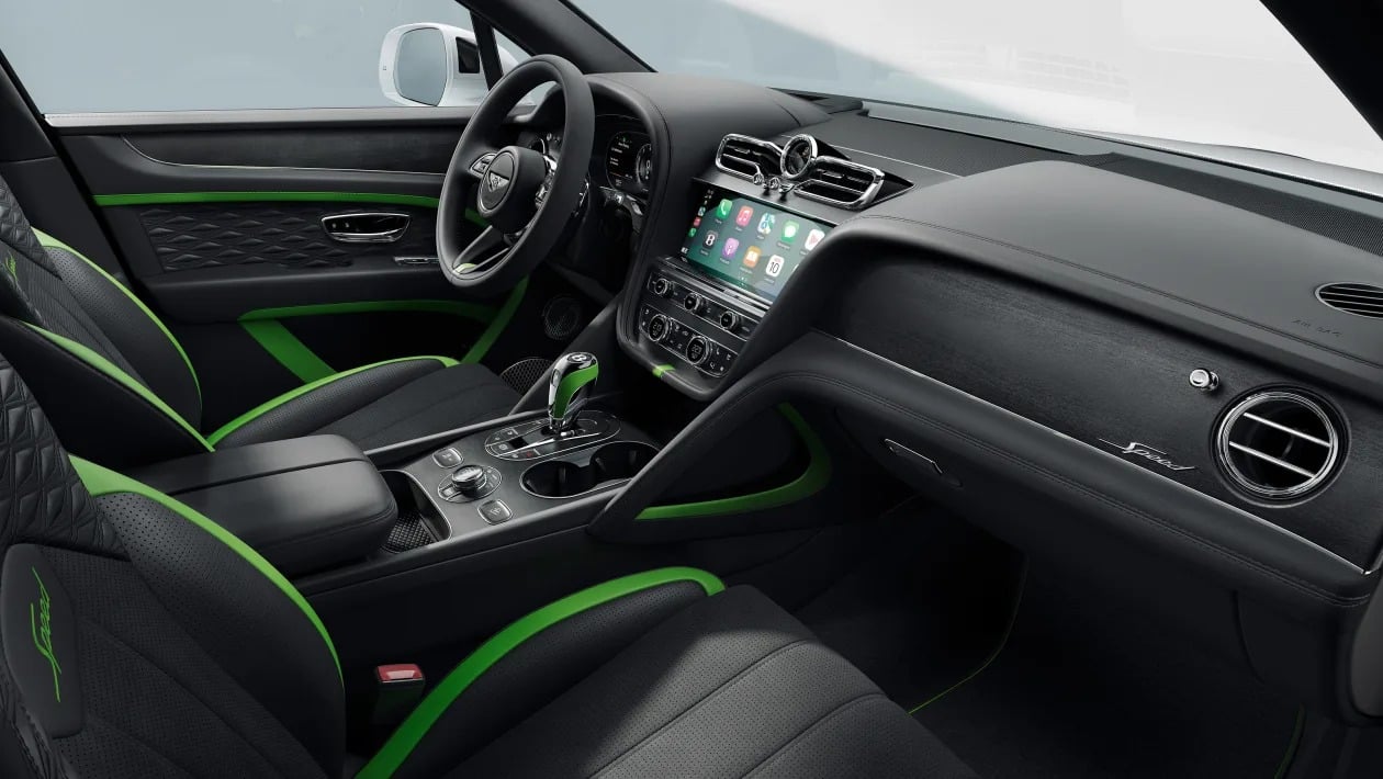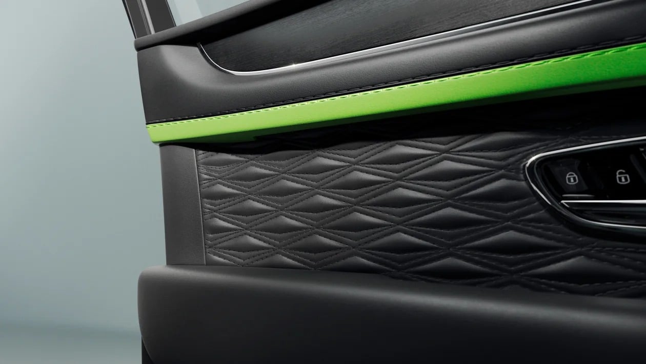 Η καμπίνα της νέας Bentayga Speed, διατηρεί την εξαιρετική ποιότητα κατασκευής που περιμένει κανείς από τη Bentley. Πολυτελή υλικά, καπιτονέ δέρμα με ραφές σε μοτίβο διαμαντιού, διακοσμητικά από χρώμιο και λεπτομέρειες, που προδίδουν ακρίβεια και φινέτσα, συνθέτουν ένα περιβάλλον άνεσης και στυλ.