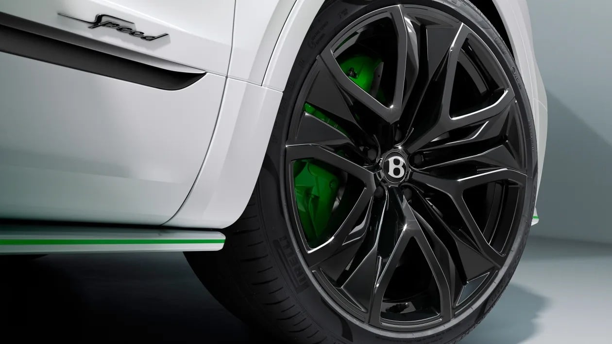 Από πίσω τους κρύβεται ένα νέο σετ προαιρετικών ζαντών 23 ιντσών, ειδικά σχεδιασμένων για το μοντέλο Speed. Εναλλακτικά, για όσους επιλέξουν τα απλούστερα ατσάλινα φρένα, η Bentley προσφέρει ζάντες 22 ιντσών.