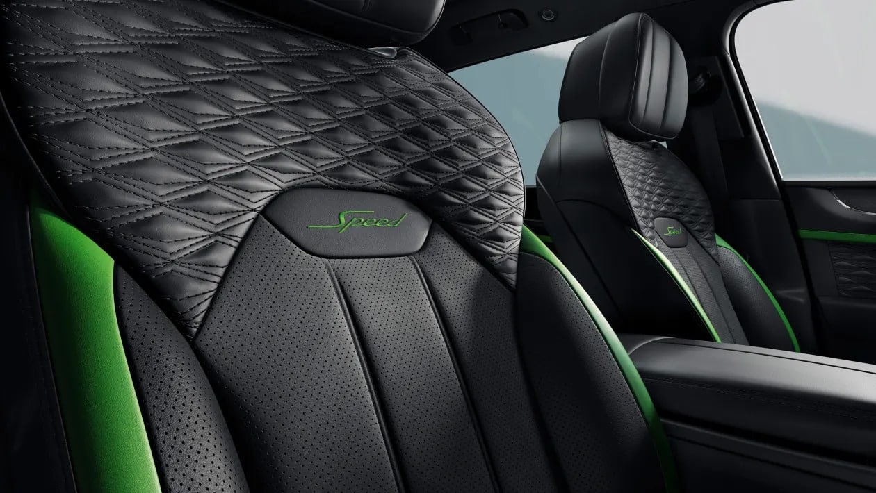 Ωστόσο, το Speed δεν είναι απλά ένα όμορφο εσωτερικό. Η Bentley έχει προσθέσει μια μοναδική οθόνη οδηγού, η οποία προβάλλει πληροφορίες σχετικές με τις επιδόσεις, όπως χρονισμούς, θερμοκρασίες και δυναμικά δεδομένα οδήγησης. Επιπλέον, τα λογότυπα Speed στα καθίσματα και οι επιλογές χρωματικών πινελιών σε πράσινο χρώμα – εσωτερικά και εξωτερικά – δημιουργούν μια ιδιαίτερη ταυτότητα.