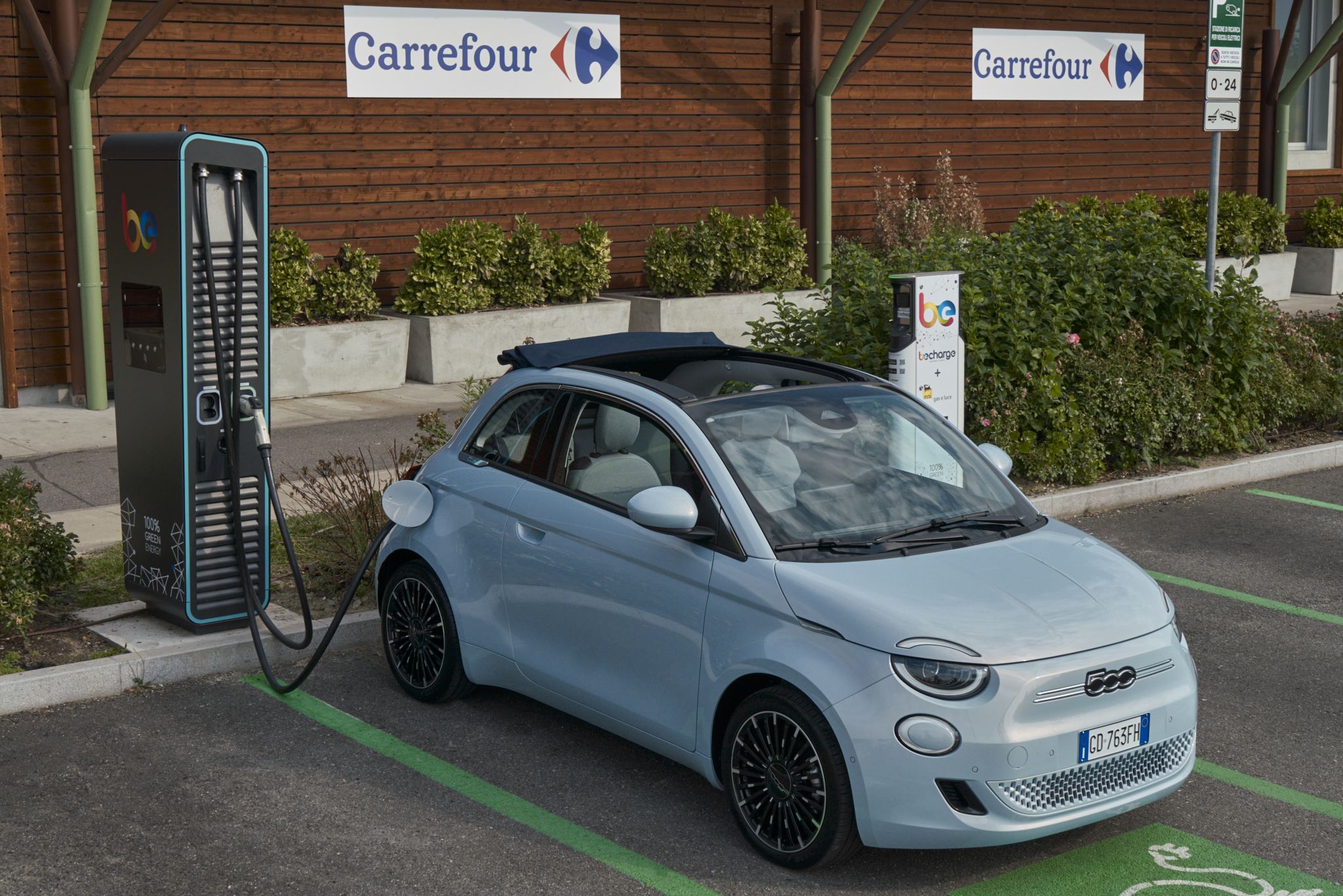 Το πρόγραμμα έλαβε χώρα σε όλη την Ιταλία και προέβλεπε την εγκατάσταση σταθμών φόρτισης στα καταστήματα της Carrefour. Παρέχοντας ωστόσο, ειδικά προνόμια για τους ιδιοκτήτες του νέου Fiat 500e.