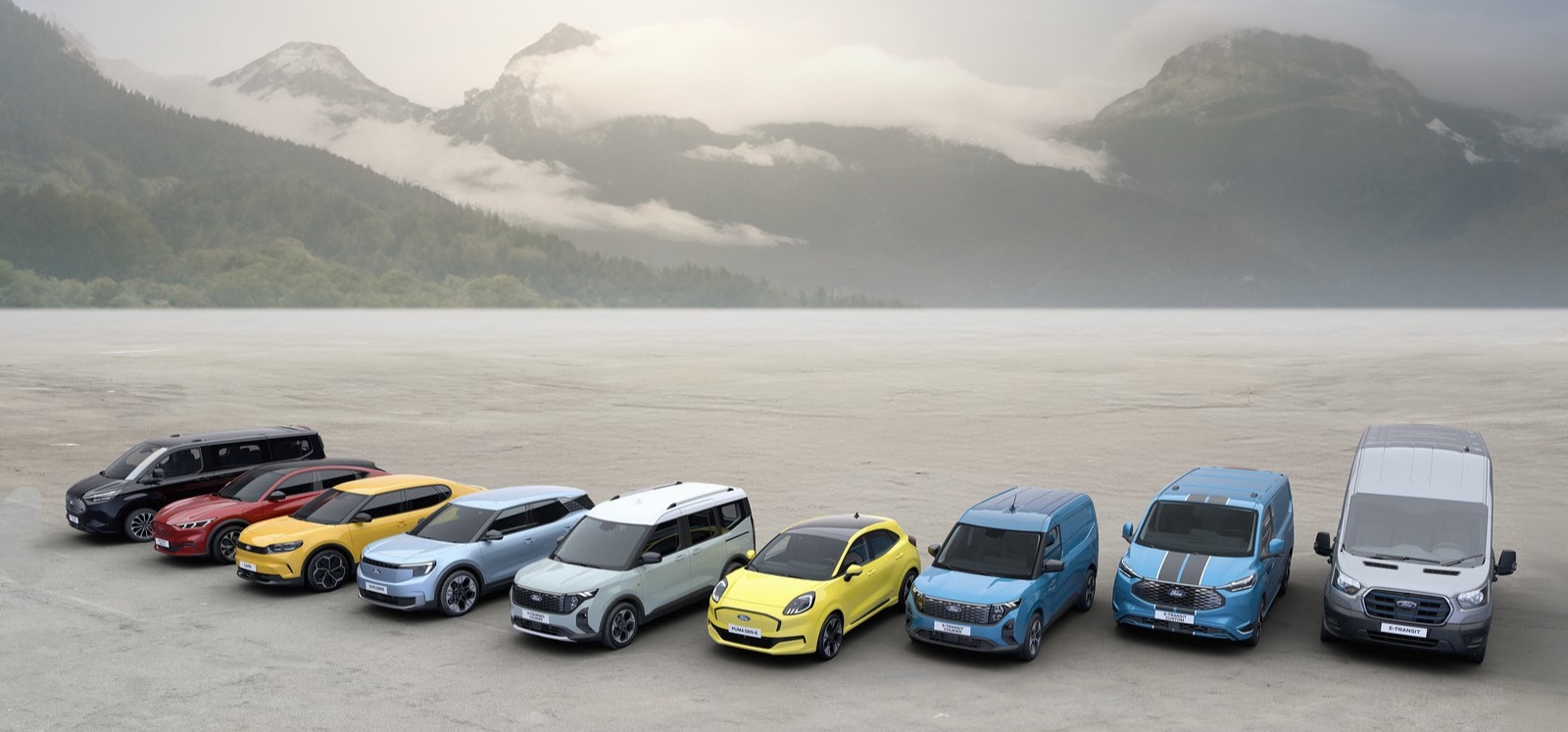Η Ford προσφέρει μια ολοκληρωμένη γκάμα ηλεκτρικών μοντέλων σε όλες τις δημοφιλείς κατηγορίες SUV, crossover, multi-activity vehicles και van, που περιλαμβάνει μοντέλα όπως τα: Puma Gen-E, Explorer, Capri, Mustang Mach-E, E-Tourneo Courier, E‑Transit Courier, E-Tourneo Custom, E-Transit Custom και E-Transit.