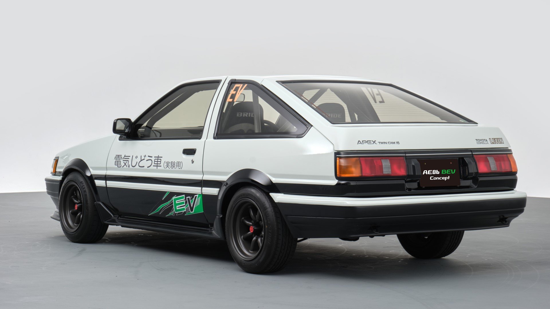 Στον αντίποδα, η αμιγώς ηλεκτρική AE86 BEV Concept διαθέτει πλέον έναν ηλεκτροκινητήρα από Toyota Tundra και μία μπαταρία από το νέο Prius. Μάλιστα, ενδιαφέρον παρουσιάζει η επιλογή 6τάχυτου χειροκίνητου κιβωτίου από την Toyota. Σύμφωνα με την ιαπωνική φίρμα, η ηλεκτρική AE86 αποδίδει περίπου 92 ίππους και μέγιστη ροπή 190 Nm.
