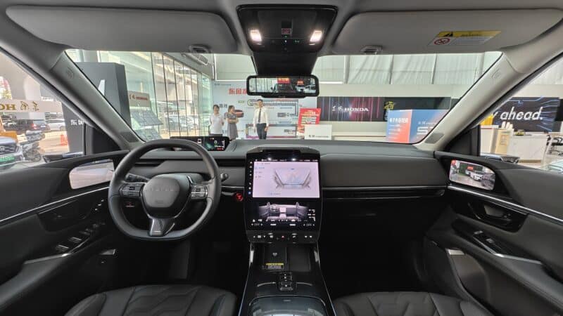 Η ανάρτηση διπλών ψαλιδιών εμπρός και πέντε συνδέσμων πίσω προσφέρει κορυφαία άνεση και έλεγχο, ξεπερνώντας μοντέλα όπως το Model Y σε κακής ποιότητας οδοστρώματα. Το τιμόνι είναι ακριβές και το φρενάρισμα είναι ρυθμιζόμενο σε τέσσερα επίπεδα αναγέννησης. Οι λειτουργίες Eco, Normal και Sport προσαρμόζουν τη συμπεριφορά του οχήματος, ανάλογα με τις προτιμήσεις του οδηγού.