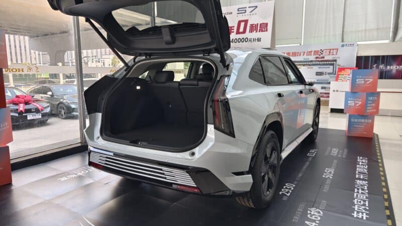 Με διαστάσεις 4.750/1.930/1.625 χλστ (μήκος, πλάτος, ύψος) και μεταξόνιο 2.930 χλστ, το S7 είναι ελαφρώς μικρότερο από το Model Y, προσφέροντας όμως καλύτερη άνεση στους πίσω επιβάτες. Οι τροχοί ξεκινούν από τις 19 ίντσες και φτάνουν προαιρετικά τις 21.