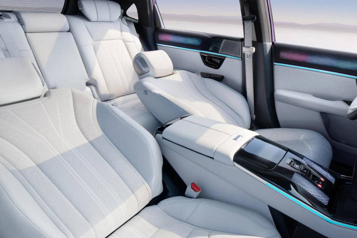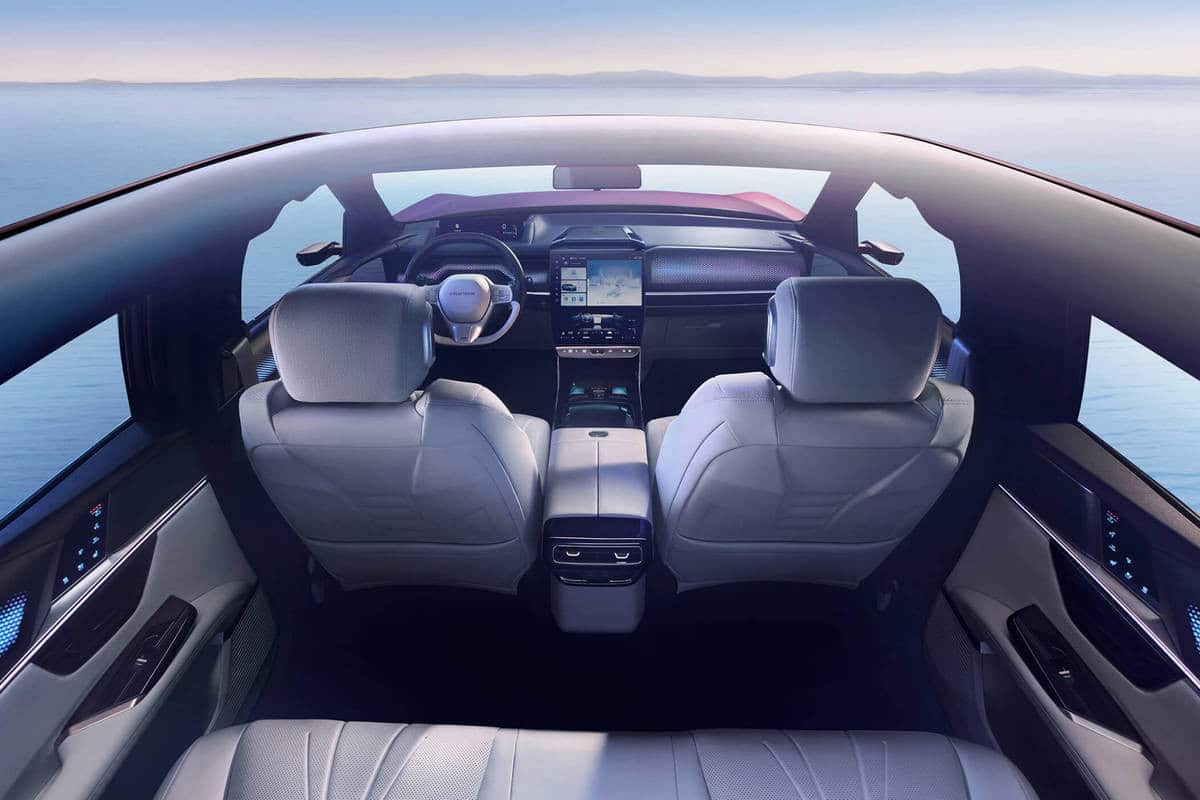Στο εσωτερικό, ο σχεδιασμός είναι σχεδόν πανομοιότυπος: πίνακας οργάνων 9,9 ιντσών, διπλή οθόνη πολυμέσων 12,8 και 10,25 ιντσών, καθώς και επιπλέον οθόνες για τις κάμερες-καθρέφτες. Οι πίσω επιβάτες μπορούν να ρυθμίζουν τον κλιματισμό και τα καθίσματά τους μέσω αφής.