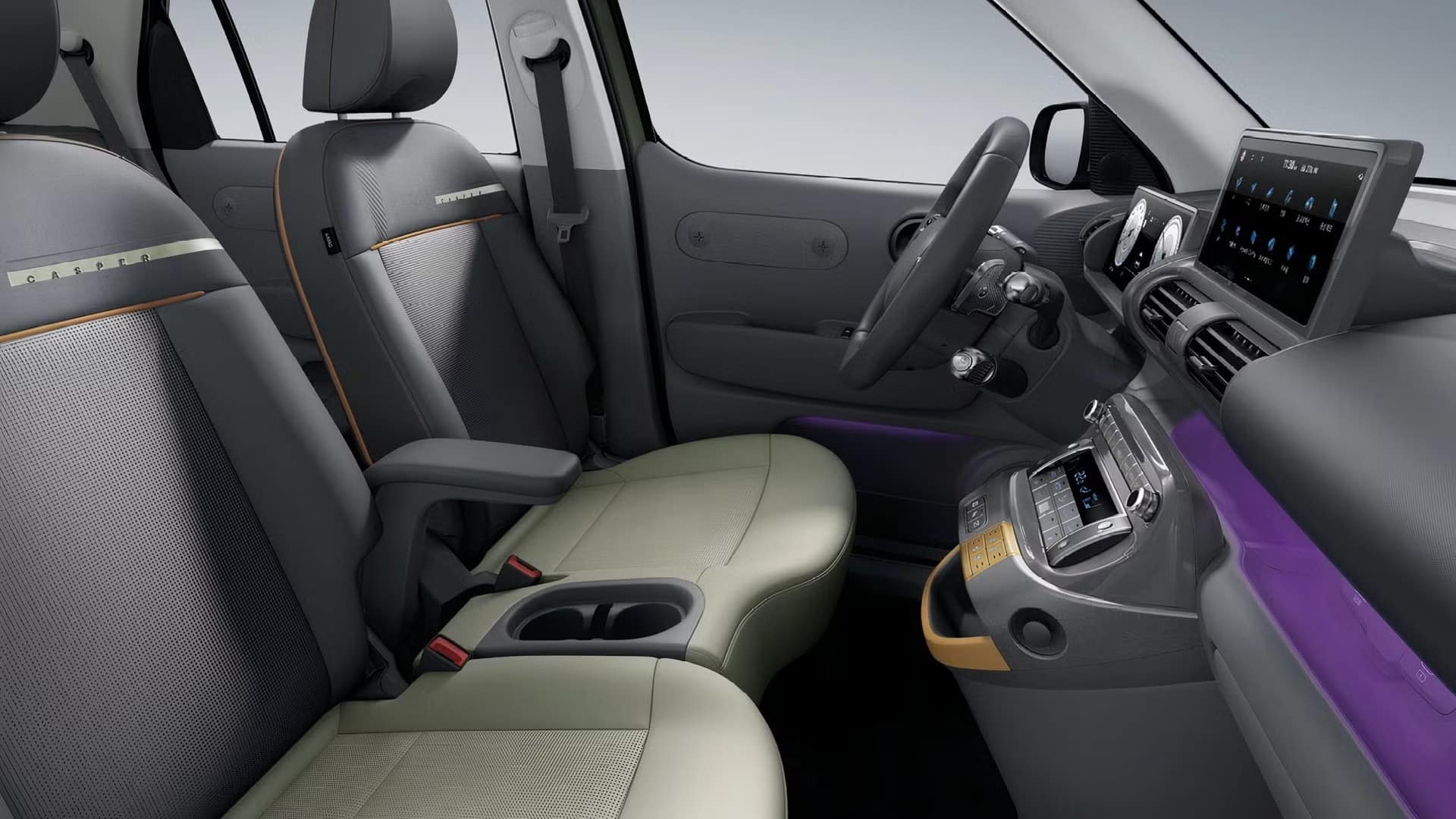 Η Hyundai προσφέρει επίσης μια σειρά από αξεσουάρ με στιβαρή εμφάνιση, όπως μια σχάρα φόρτωσης στην οροφή, που φαίνεται ιδανική για εξορμήσεις. Χάρη στο ψηλό και στενό του σχήμα, το Casper Electric Cross προσφέρει χώρο για τέσσερα άτομα, σε μια καμπίνα με «συντονισμένη» χρωματική παλέτα. Η δίχρωμη πράσινη και μαύρη ταπετσαρία «Amazonas», προσδίδει στο εσωτερικό, μια χαρακτηριστική και ελκυστική αίσθηση.