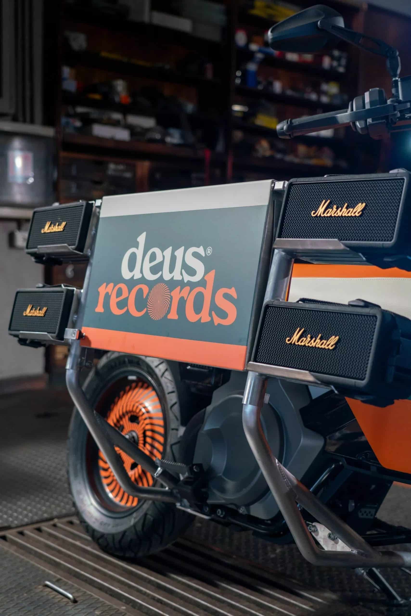 Η ειδική έκδοση BMW Motorrad x Deus, διαθέτει χειροποίητη δερμάτινη σέλα, τέσσερα ηχεία Marshall και – ναι, καλά διαβάσατε – πτυσσόμενο πικάπ DJ! Ιδανική για βραδινές βόλτες στην παραλία με μουσική στο τέρμα. Μόνο που υπάρχει ένα θέμα: δεν πωλείται. Τουλάχιστον όχι ακόμη.
