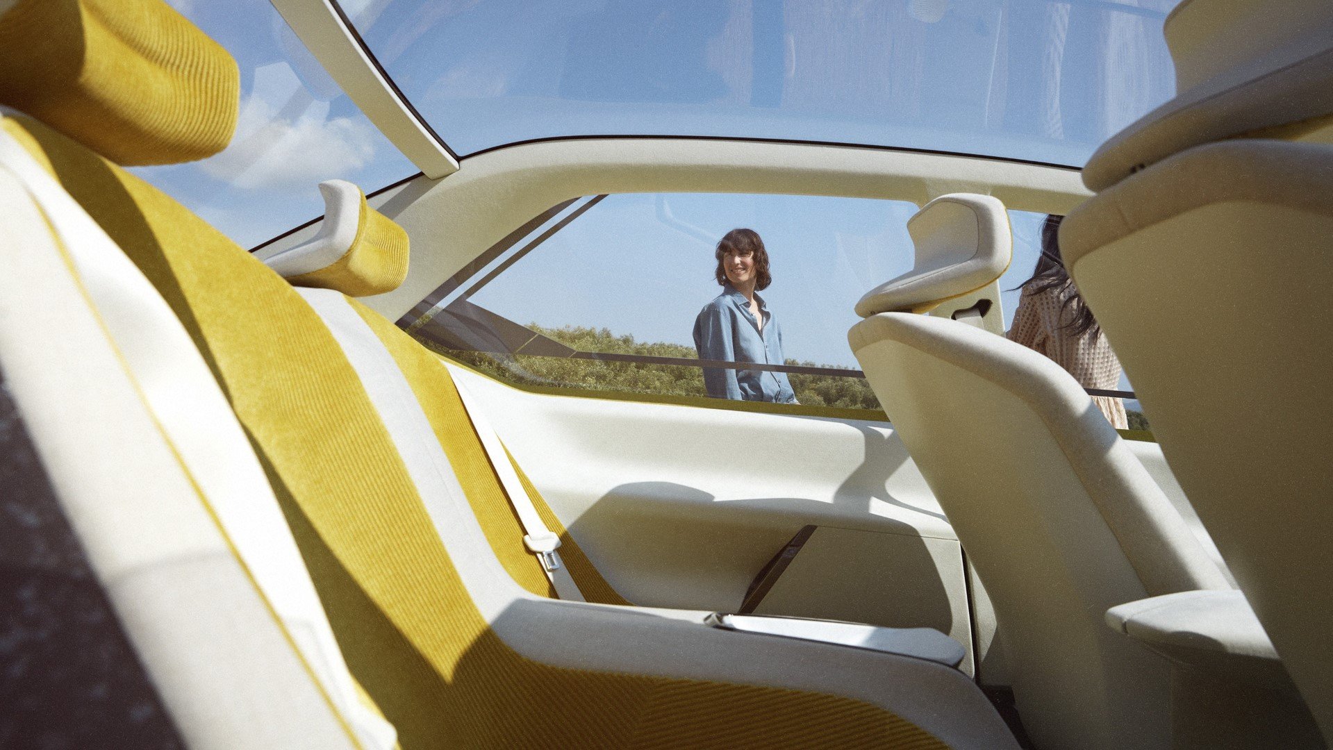 Επίσης, τα στοιχεία E Ink στο κάτω τμήμα των πλευρικών παραθύρων συμμετέχουν στο σενάριο καλωσορίσματος. Σκοπός τους είναι να κατευθύνουν την προσοχή στην περιοχή αισθητήρων που ενεργοποιεί το αυτόματο άνοιγμα της πόρτας.