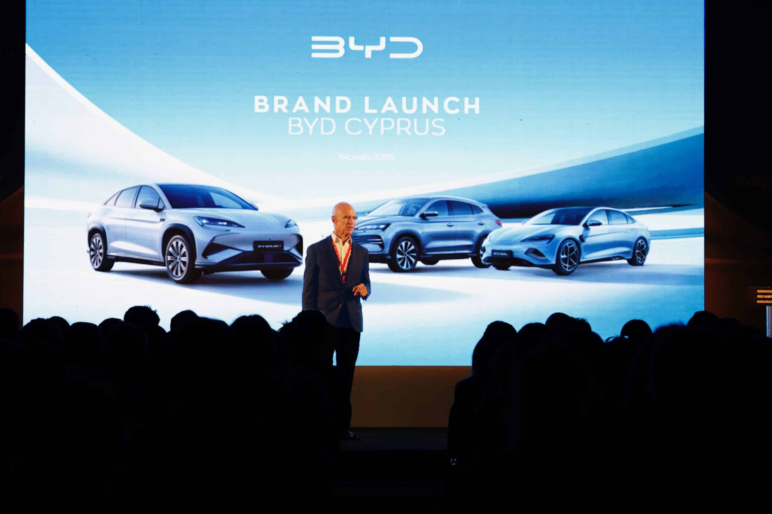Ο κος Σ. Τάκη απηύθυνε έναν θερμό χαιρετισμό, υπογραμμίζοντας τη σημασία της παρουσίας της BYD στην Κύπρο και το όραμα για ένα πιο πράσινο, βιώσιμο μέλλον στις μετακινήσεις. Η έναρξη της επιχειρησιακής δραστηριότητας της BYD στην Κύπρο περιλαμβάνει τη λειτουργία δύο υπερσύγχρονων εκθεσιακών χώρων σε Λευκωσία και Λεμεσό, καθώς και επαρκές απόθεμα ετοιμοπαράδοτων οχημάτων, για άμεση παράδοση στους πρώτους πελάτες.