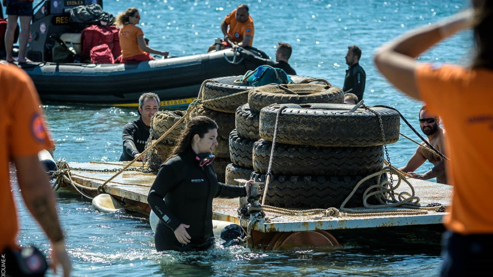 Περισσότερα από 20 ελαστικά οχημάτων, τα οποία είχαν ήδη εντοπίσει και καταγράψει στην εν λόγω θαλάσσια περιοχή, βγήκαν από τον βυθό. Προφανώς, σε αυτό συνετέλεσε η ομάδα 10 πιστοποιημένων δυτών της Επίλεκτης Ομάδας Ειδικών Αποστολών Αιγάλεω. Στη συνεχεία τα τοποθέτησαν σε πλωτή εξέδρα που εξασφάλισε και παραχώρησε για τις ανάγκες ο Δήμος Βάρης Βούλας Βουλιαγμένης.