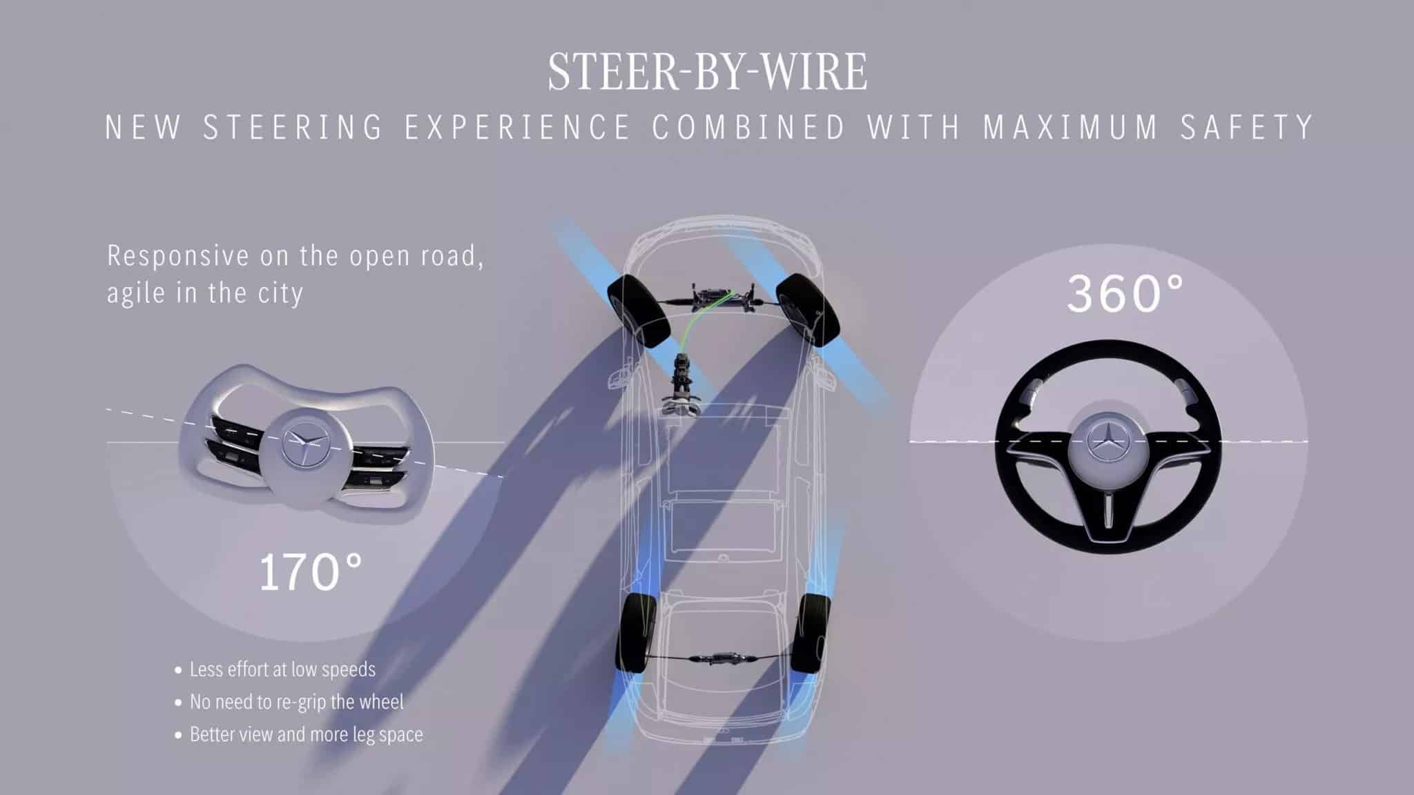 Ο CTO της Mercedes, Markus Schäfer, χαρακτηρίζει το steer-by-wire ως μια τεχνολογική πρόοδο με τεράστιες δυνατότητες. Όπως δηλώνει, το νέο τιμόνι προσφέρει «μια μοναδική εμπειρία πελάτη», και σε συνδυασμό με τα συστήματα αυτόνομης οδήγησης επιπέδου SAE 3, ανοίγει δρόμο για πιο άνετες και διασκεδαστικές μετακινήσεις, ακόμα και με Netflix στο ταμπλό!