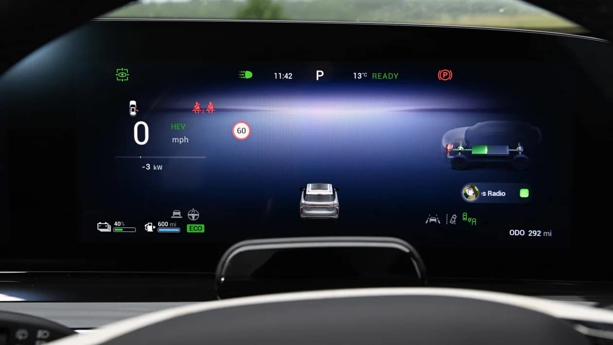 Στο εσωτερικό, η διάταξη διπλής οθόνης (δύο οθόνες 12,3 ιντσών ενωμένες), προσδίδει μια σύγχρονη αίσθηση και τα υλικά δείχνουν τόσο πολυτελή όσο και ανθεκτικά. Υπάρχουν διπλές ασύρματες βάσεις φόρτισης και ένα head-up display. Τα ογκώδη, περιστροφικά χειριστήρια κάτω από την κεντρική οθόνη για τις λειτουργίες οδήγησης, τη θερμοκρασία και την ταχύτητα του ανεμιστήρα λειτουργούν άψογα, προσφέροντας μια εξαιρετική απτική αίσθηση. Ωστόσο, η έλλειψη φυσικού κουμπιού έντασης για το στερεοφωνικό της Sony, είναι ένα μικρό μείον, αν και τα απτικά κουμπιά στο τιμόνι, λειτουργούν ικανοποιητικά.