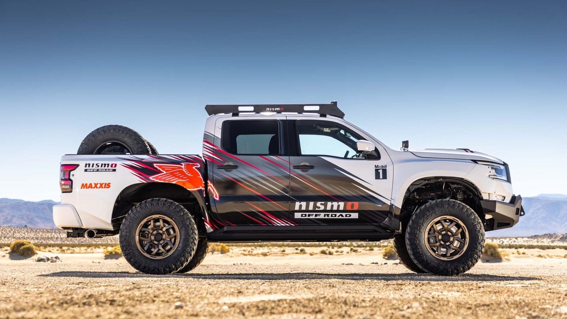 Επίσης, το πρωτότυπο Nismo Off-Road Frontier V8, που κατασκεύασε η Forsberg Racing, οδηγεί το Frontier στα όρια του ενθουσιασμού. Διαθέτει κινητήρα Titan V8, μοναδική ανάρτηση, φαρδύτερο αμάξωμα και αξεσουάρ Nismo Off-Road.
