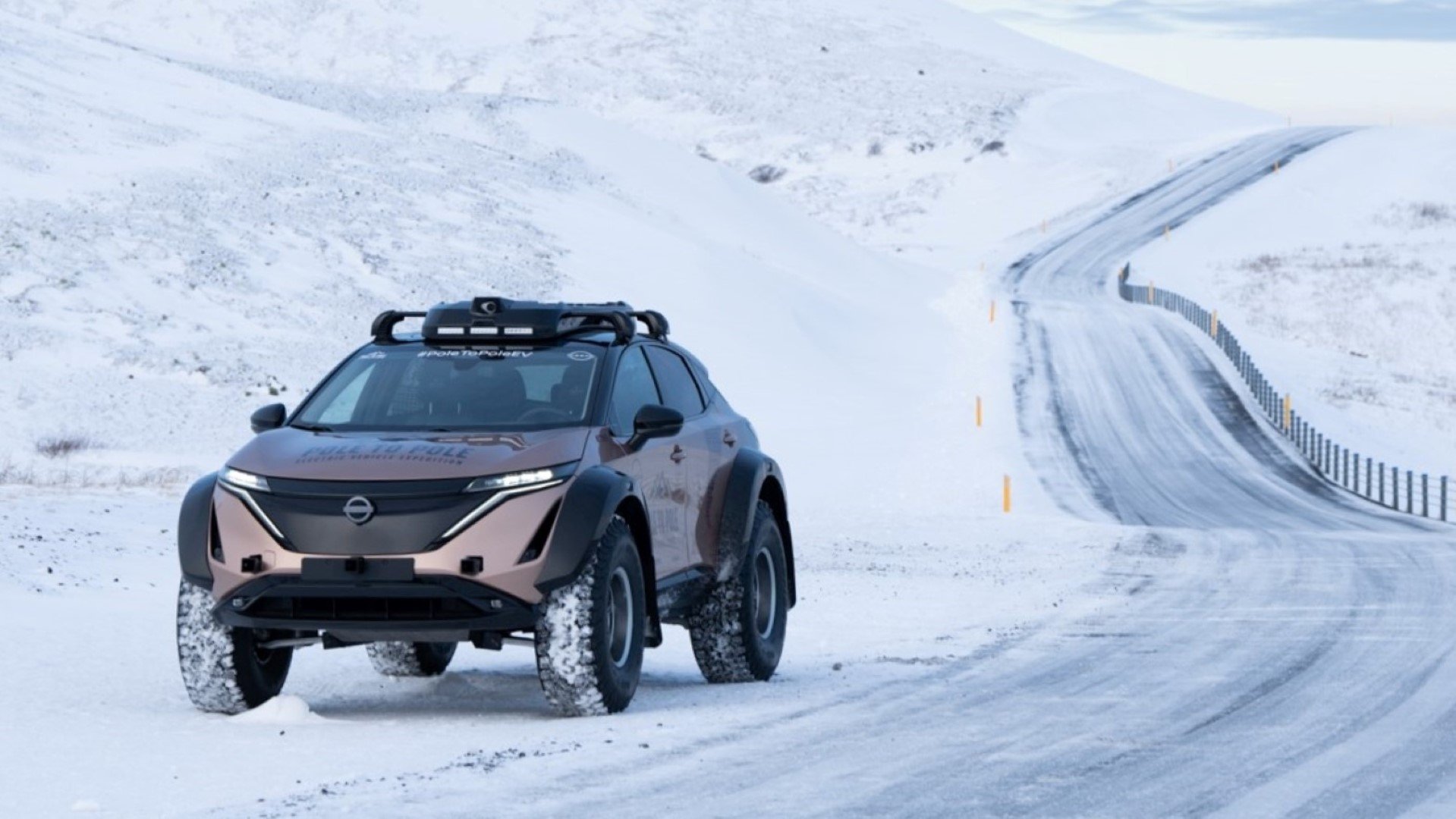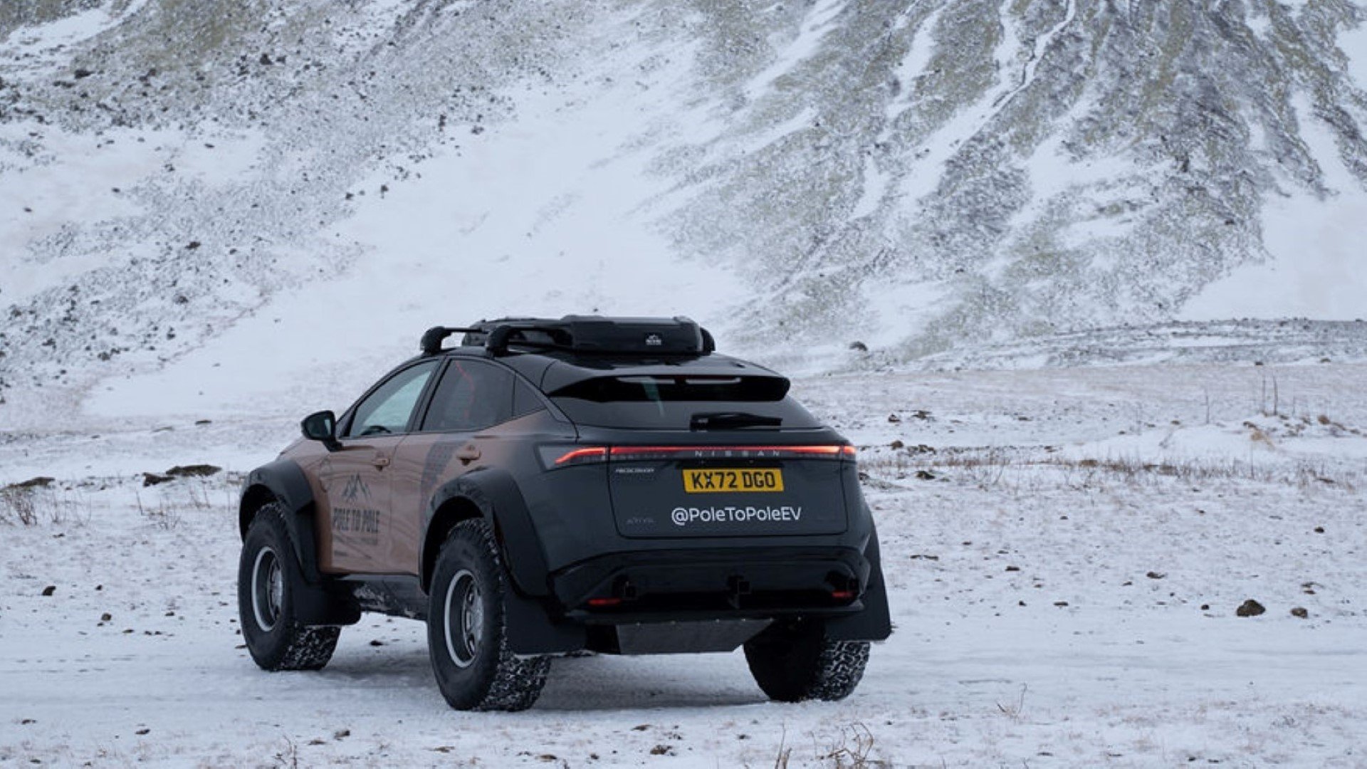 Το συγκεκριμένο Nissan Ariya έχει υποστεί κάποιες μικρές τροποποιήσεις από την ιαπωνική φίρμα, ώστε να αντιμετωπίσει τα ακραία εδάφη που θα εξερευνήσει η ομάδα. Πιο συγκεκριμένα, η ανάρτηση έχει ανυψωθεί και οι θόλοι των τροχών έχουν επεκταθεί, ώστε να χωρέσουν τα τεράστια ελαστικά των 39 ιντσών. Οι τροχοί αυτοί είναι κατάλληλοι για να βοηθήσουν το αυτοκίνητο να «πατήσει» σε βαθύ χιόνι και θαλάσσιο πάγο.