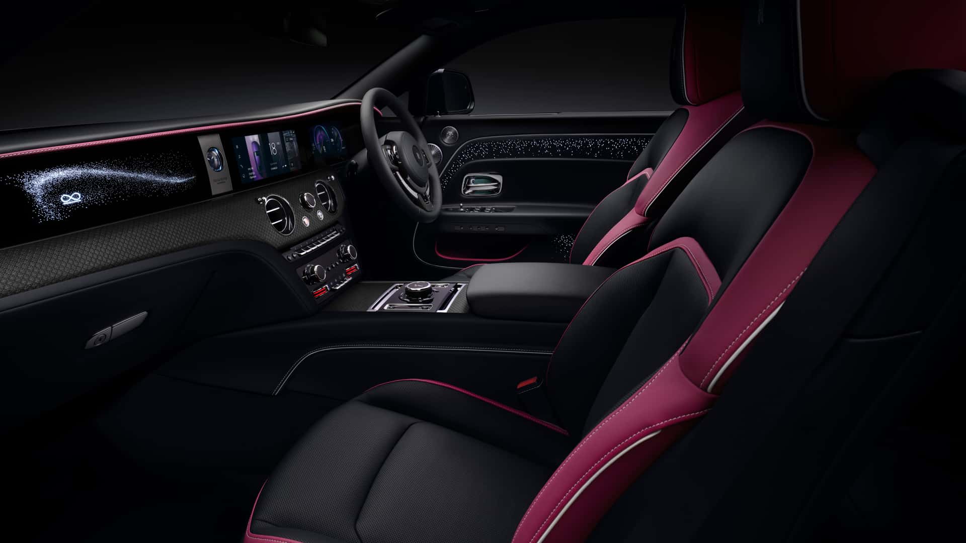 Η αισθητική του Spectre Black Badge είναι σκοτεινή και επιβλητική, με στοιχεία όπως η φωτιζόμενη μάσκα, το στολίδι Spirit of Ecstasy και οι λαβές των θυρών να έχουν σκούρο φινίρισμα. Το μοντέλο μπορεί να προσαρμοστεί με χιλιάδες χρώματα και επιλογές, με το Vapor Violet να είναι μόνο ένα από τα 44 διαθέσιμα χρώματα.