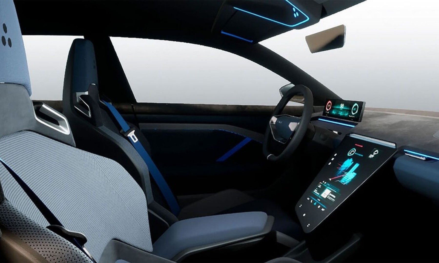 Εσωτερικά, έχει μία μινιμαλιστική σχεδίαση, χωρίς φυσικά κουμπιά, με μία οθόνη για πίνακα οργάνων πίσω από το τιμόνι. Στο κέντρο του ταμπλό υπάρχει άλλη μία κάθετη μεγαλύτερη οθόνη.