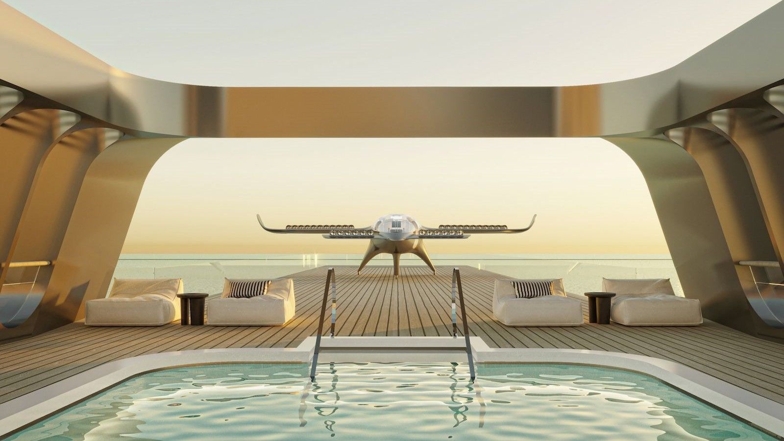 Φυσικά, το σκάφος διαθέτει πισίνα αλλά και ελικοδρόμιο. Μάλιστα, υπάρχουν διαθέσιμοι χώροι στάθμευσης οχημάτων, ώστε οι κάτοχοί του να μπορούν να παίρνουν μαζί τους τα αγαπημένα τους οχήματα.