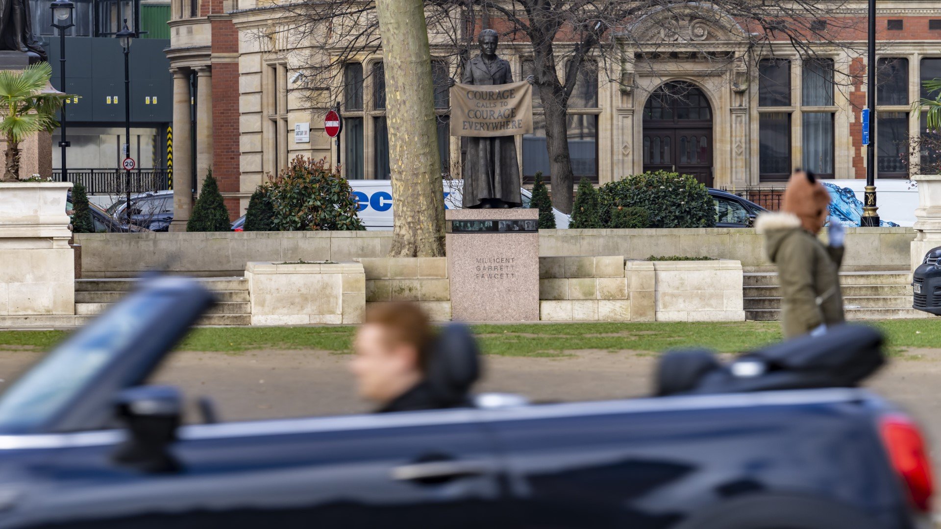 Ποιος είναι ο καλύτερος τρόπος για να ξεκινήσεις μία περιήγηση με το MINI Cooper SE Cabrio σε μία πόλη 9 εκατομμυρίων κατοίκων με πλούσια ιστορία; Μα, φυσικά, το «Courage», ένα από τα νεότερα αγάλματα στο ιστορικό Λονδίνο. Ειδικότερα, η κατασκευή του έγινε το 2018, προς τιμήν της ακτιβίστριας για τα δικαιώματα των γυναικών, Dame Millicent Garrett Fawcett.