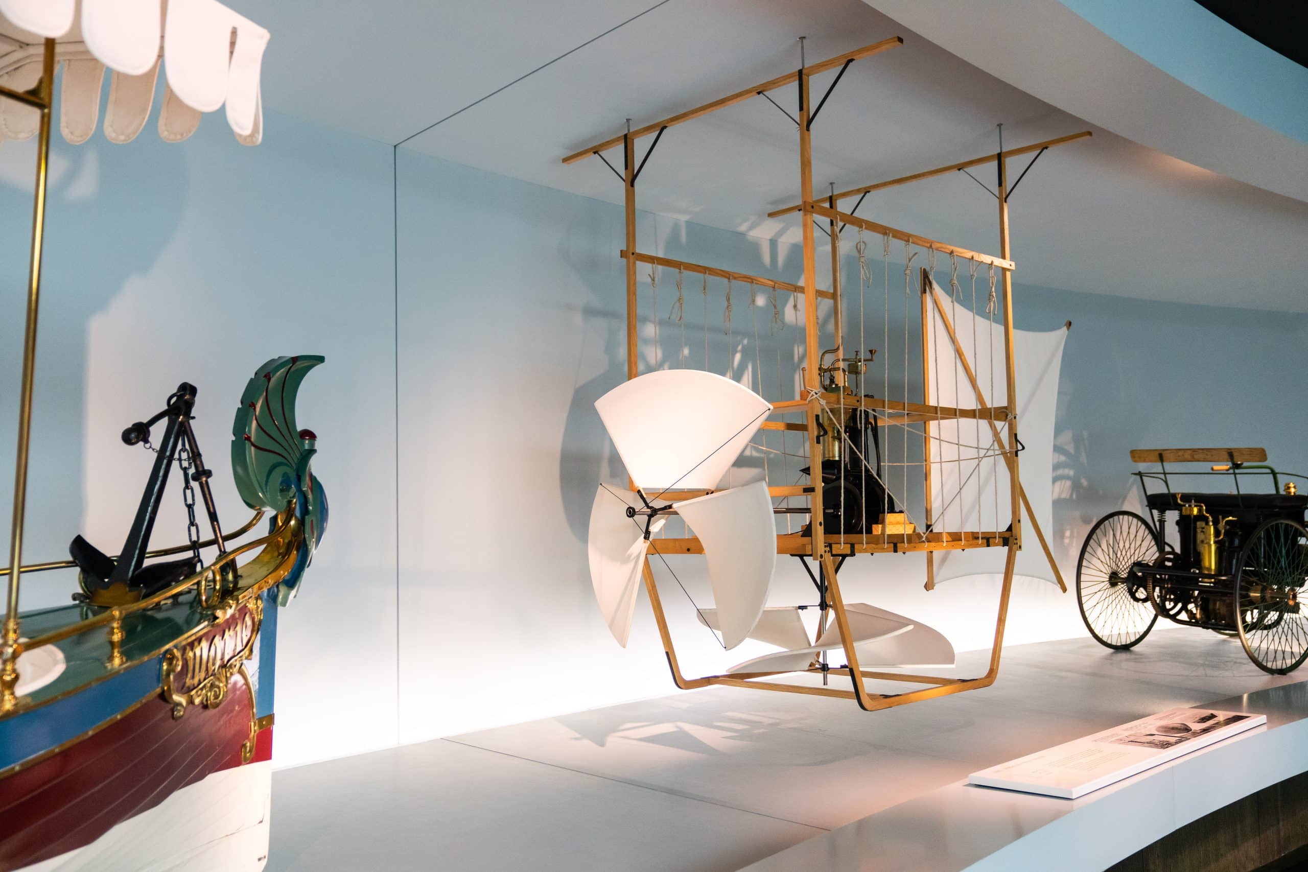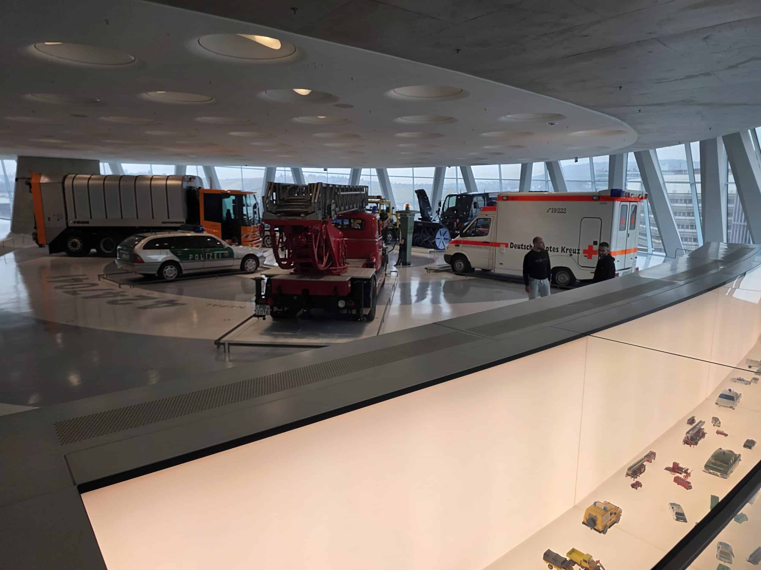 Καθώς ο επισκέπτης κατηφορίζει στους διαδρόμους, μπορεί να παρακολουθήσει τα καντηλάκια με κερί, που εκτελούσαν χρέη φώτων, να εξελίσσονται σε LED Matrix και το μοχλό (σε στυλ εξωλέμβιας) του Motorwagen να καταλήγει στο …διαστημικό τιμόνι της W11 του Lewis Hamilton.