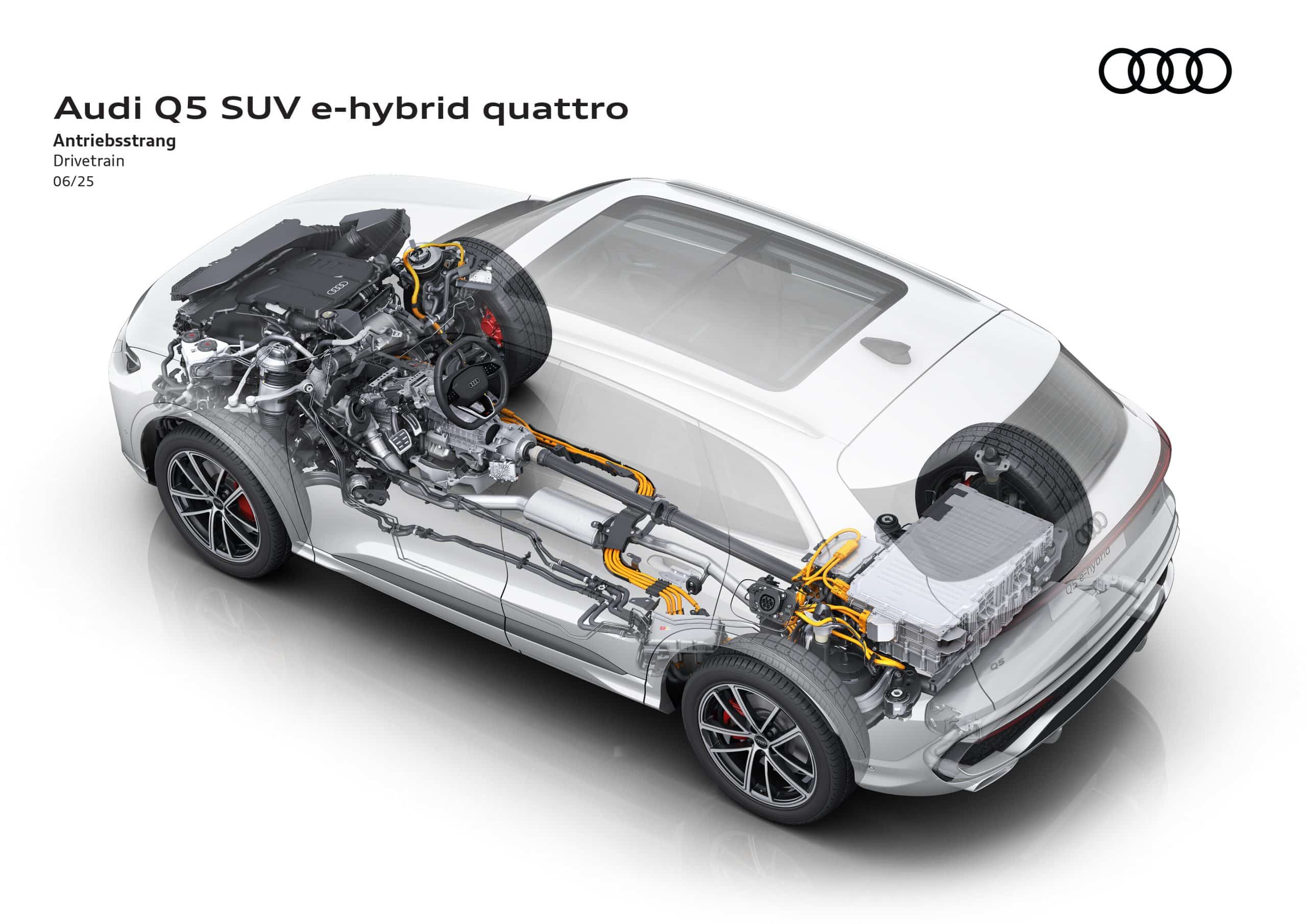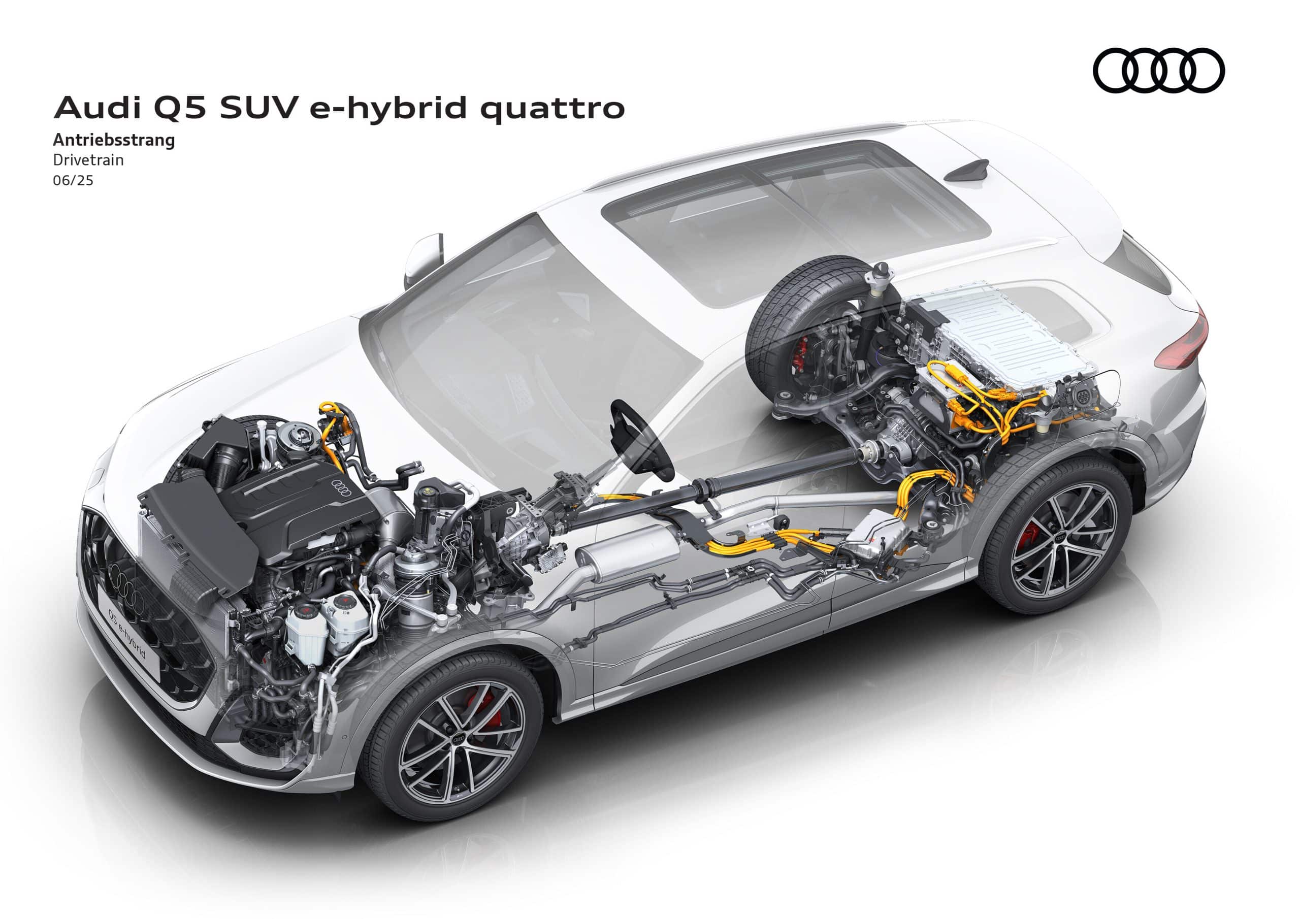 Η Audi επεκτείνει τη νέα γκάμα του Q5: εκτός από τα μοντέλα εσωτερικής καύσης με τεχνολογία MHEV plus, τα SUV και Sportback θα κυκλοφορήσουν επίσης ως e–hybrid (PHEV). Τόσο το Q5 SUV e-hybrid quattro όσο και το Q5 Sportback e-hybrid quattro θα διατίθενται σε δύο επίπεδα ισχύος: με ισχύ 299 hp ή 367 hp.