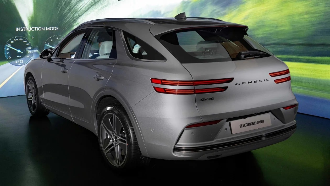 Το εξωτερικό του GV70, έχει ξανασχεδιαστεί με νέο προφυλακτήρα, λαμπερή μάσκα, ανανεωμένα πίσω φώτα και νέους τροχούς. Το υψηλά τοποθετημένο φως φρένων, διατρέχει πλέον σχεδόν όλη την αεροτομή.