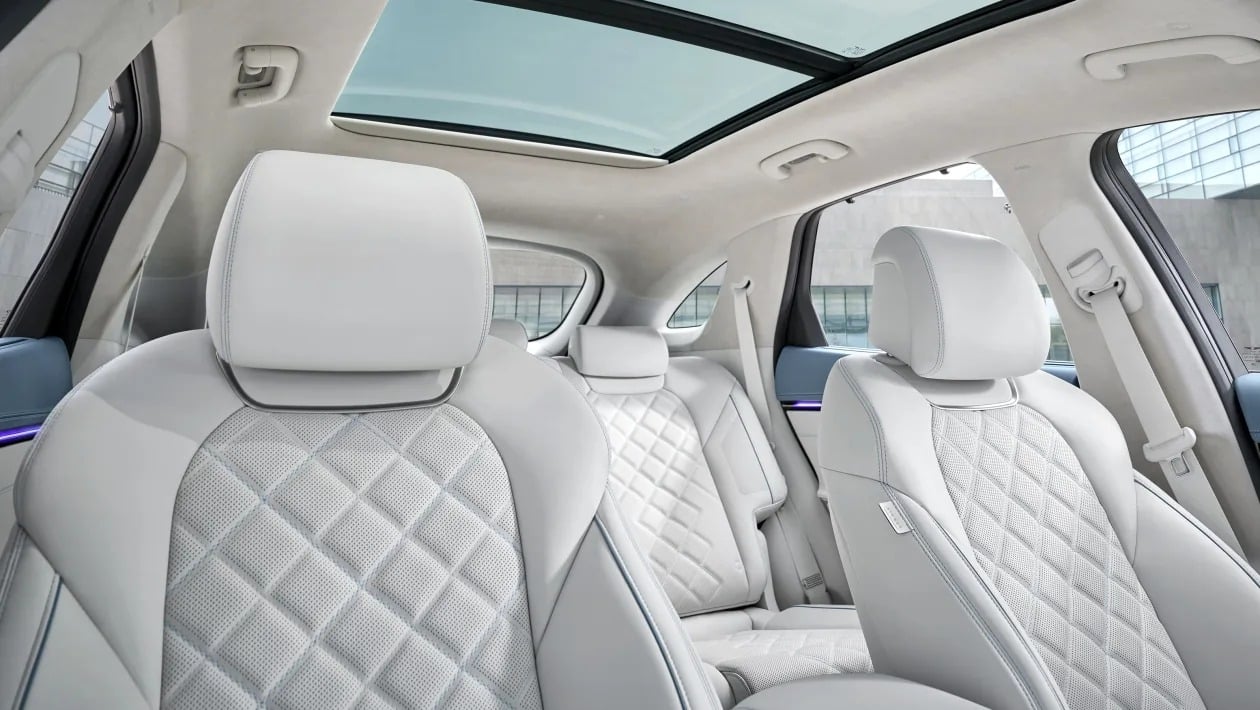 Στο εσωτερικό, η νέα οθόνη των 27 ιντσών, ενσωματώνει infotainment και ψηφιακό πίνακα οργάνων. Παρότι είναι οθόνη αφής, ο χρήστης μπορεί να χρησιμοποιήσει και φυσικό χειριστήριο στην κονσόλα. Ο κλιματισμός ελέγχεται από νέο πάνελ αφής, ενώ έχουν προστεθεί νέος φωτισμός, τιμόνι τριών ακτίνων και σύστημα ήχου Bang & Olufsen με Dolby Atmos. Με μια επίσης πρωτότυπη λειτουργία, ο «επιμελητής διάθεσης», ρυθμίζει φώτα, μουσική και άρωμα, για να βελτιώσει τη διάθεση των επιβατών.