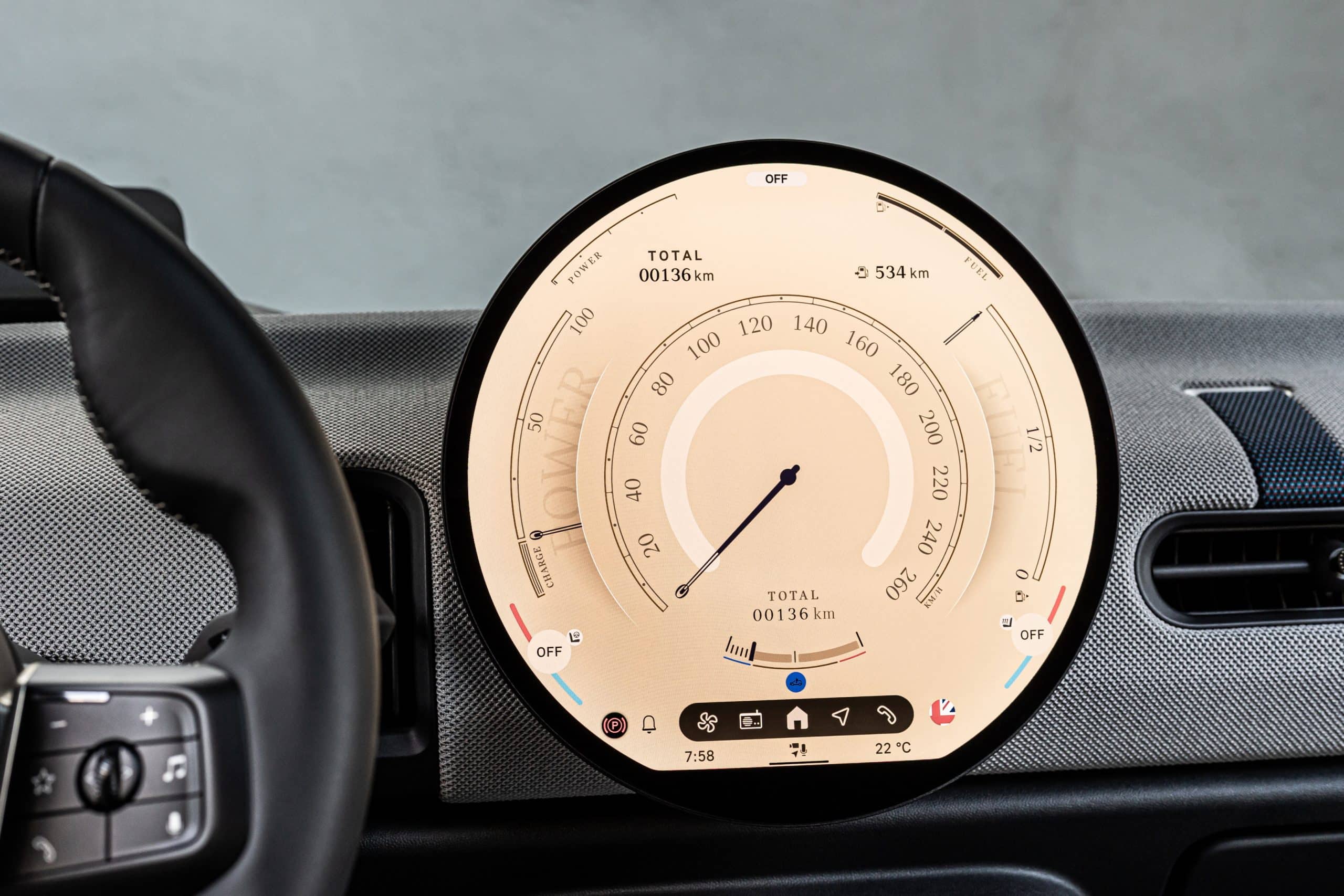 Στο cockpit η διαμέτρου 24 εκατοστών λεπτή οθόνη OLED με υψηλή ανάλυση έχει ένα κορυφαίας ποιότητας γυάλινο άκρο. Η λογική με την οποία λειτουργεί είναι παρόμοια με εκείνη ενός smartphone και μπορεί να ελέγχεται διαισθητικά μέσω αφής.