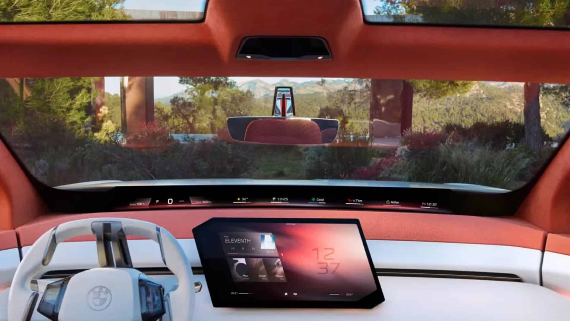 Στο εσωτερικό, η Neue Klasse φέρνει δραστικές αλλαγές. Η πιο σημαντική προσθήκη είναι η Panoramic Vision, μια πανοραμική head-up οθόνη, που εκτείνεται σε όλο το πλάτος του παρμπρίζ. Συνοδεύεται από μια μινιμαλιστική κεντρική οθόνη και μειωμένη ανάγκη για φυσικά κουμπιά.