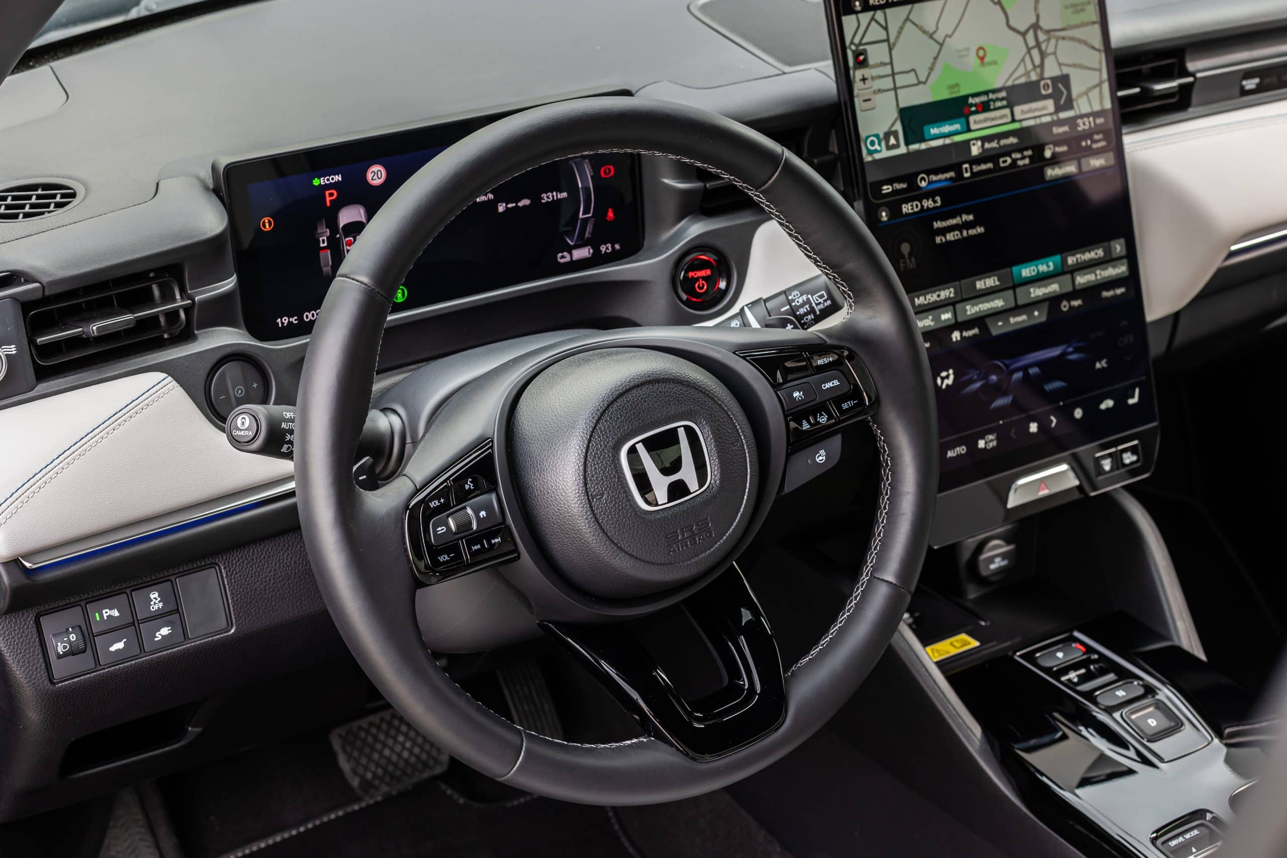 Το σύστημα δυναμικού ελέγχου ευστάθειας της Honda διασφαλίζει μία ομαλή και γραμμική αίσθηση του τιμονιού. Και κάνει το τιμόνι ελαφρύ και ευέλικτο στις χαμηλές ταχύτητες και πιο σφικτό στις υψηλότερες ταχύτητες. Μια εξέλιξη ειδικά για την ευρωπαϊκή έκδοση του e:Ny1.