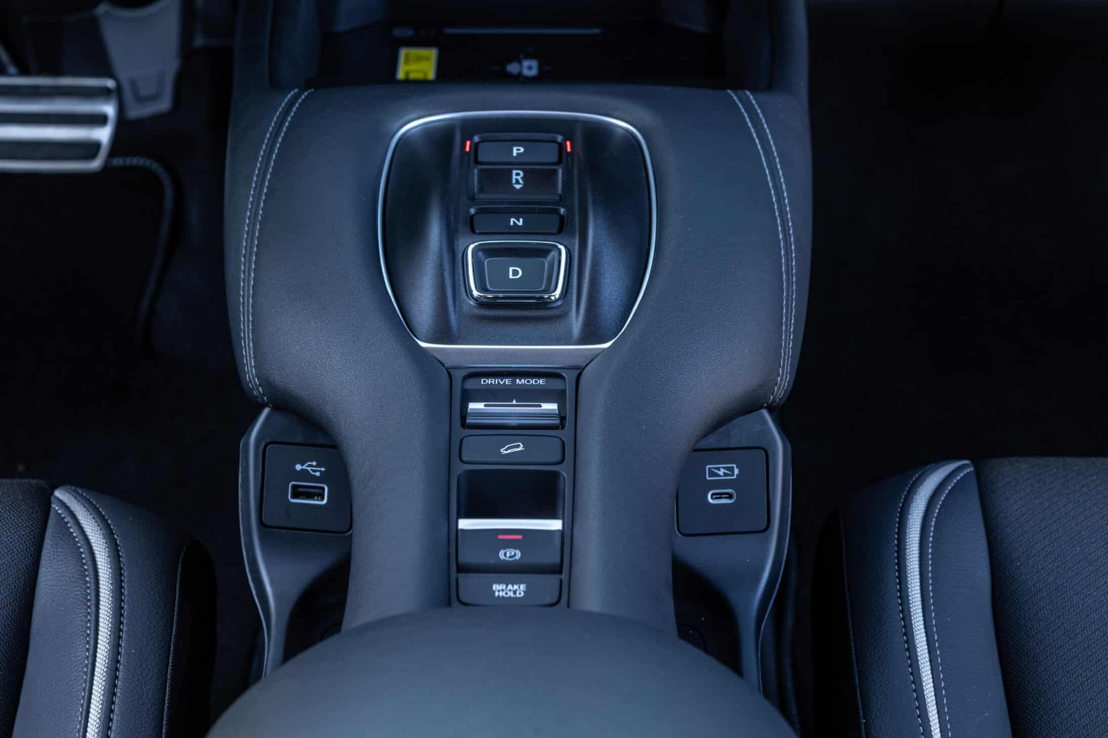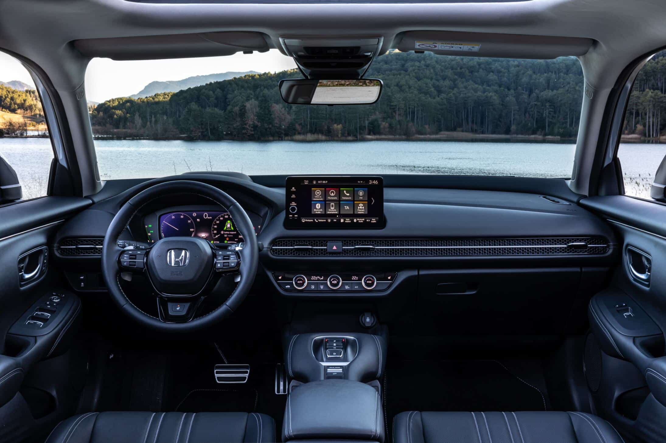 Μία μεγάλη οθόνη εννέα ιντσών βρίσκεται στο κέντρο του ταμπλό, που εκτείνεται σε όλο το πλάτος της καμπίνας. Ενώ η διαιρούμενη κεντρική κονσόλα, σχεδιασμένη για το ZR-V, ενσωματώνει τον επιλογέα ταχυτήτων και το μπουτόν του χειρόφρενου. Ο επιλογέας ταχυτήτων shift-by-wire έχει επανασχεδιαστεί ώστε η χρήση από τον οδηγό να γίνεται διαισθητικά. Χωρίς να αποσπάται η προσοχή του από τον δρόμο.