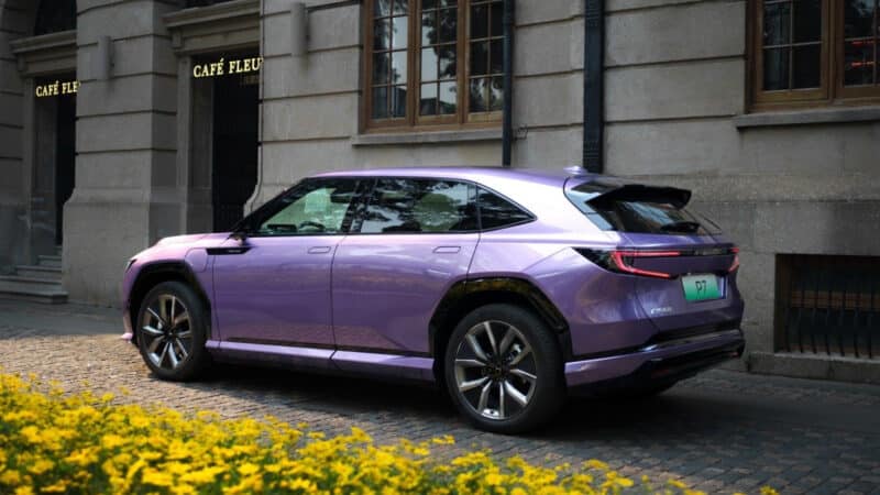 Το P7 έχει εντυπωσιακή αυτονομία 650 χλμ. CLTC, με ισχύ έως 469 ίππους στην AWD έκδοση. Με ίδια σχεδόν σχεδίαση με το S7, ξεχωρίζει χάρη σε λεπτομέρειες όπως οι διαφορετικοί προβολείς, φώτα και προφυλακτήρες. Διατίθεται σε πέντε χρώματα: μωβ, μπλε, ασημί, λευκό και μαύρο.