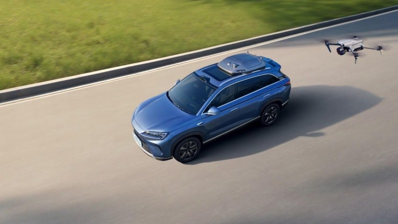 Ωστόσο, το στοιχείο που πραγματικά τραβά την προσοχή, είναι το πρώτο στον κόσμο ανυψούμενο και ανασυρόμενο πεδίο – βάση προσγείωσης drone. Το σύστημα αυτό, επιτρέπει την απόλυτη ενοποίηση μεταξύ οχήματος και drone, προσφέροντας δυναμική απογείωση και προσγείωση, έξυπνη φόρτιση και λειτουργίες βίντεο/φωτογραφίας αέρα-εδάφους μέσω ενός απλού κουμπιού.